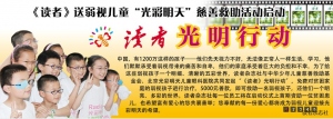 《读者》送弱视儿童“光彩明天”慈善救助活动启动2012-12-272012年8月1日下午2点,中华儿慈会、《读者》杂志社与北京光彩明天儿童眼科医院签署合作协议,共同开展送弱视儿童“光彩明天”大型公益活动。2012年12月26日,救助活动正式启动。 -