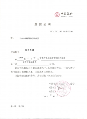 中国银行资信证明2012-12-20中国银行资信证明