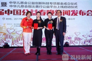 【荔枝网】大爱满南京 2018年公益春晚移师南京2017-11-022018第四届公益春节联欢晚会新闻发布会暨中华儿慈会科技创新公益专项基金成立和指尖善行公益平台启动仪式今天在南京举行。公益春晚由中华少年儿童慈善救助基金会发起,从2015年首届开始,已经在深圳、北京连续举办三届。2018年第四届公益春晚以“发现平凡公益之人 点亮慈善大爱之光” 为主题,将于2018年1月8日在南京奥体中心上演。 此次公益春晚移师南京举办,不仅是对江苏公益事业的肯定,也是将会为南京的公益事业创造出新的理念与模式,而在晚会方面还将增加更多感人的环节和丰富的内容。 2018年公益春晚拟邀请形象大使栗娜、李昱和、张庭,关爱留守儿童爱心大使雷佳、刘大成、花之悦,爱心小天使吴甜甜、龙凤传琪,以及少数民族歌手尔玛康乐、1913女团、TFBOYS等诸多爱心明星,而那些长期以来践行公益慈善的爱心企业家、爱心艺术家等爱心人士和受过资助的孩子也将邀请来到活动现场,与大家一同分享每一个与公益慈善有关的动人故事。晚会将由中央电视台和江苏广电著名主持人联袂。 本届晚会除了颁出2017年度最佳公益人奖、2017年度杰出贡献机构奖外,将重点探索公益人和公益项目背后的感人故事,使公益心灵和公益行为诠释得更加完美。此外,公益春晚还将增加互动环节,全程直播和在线点赞,场内场外都可以通过网络奉献爱心。活动现场著名画家刘均鹏、收藏家蒋云等爱心人士为公益春晚捐出了自己特为公益春晚精心创作的作品和收藏精品,浙江忆升科技有限公司率先向中华少年儿童慈善救助基金会捐出了一百万爱心款。 另据了解,在当天的活动现场,还举行了中华少年儿童慈善救助基金会公益捐助客户端——指尖善行的启动仪式。下载客户端后,爱心人士通过浏览救助人员的信息,动动手指就可以进行捐款。