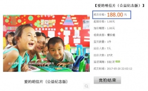 【幸福网】中华儿慈会携手阿里巴巴开展520爱心拍卖活动2017-05-252017年5月19日0点至5月20日22:00期间,中华少年儿童慈善救助基金会(以下简称:中华儿慈会)携手阿里巴巴公益与闲鱼拍卖,联合开展520爱心拍卖活动。活动期间竞拍获得善款4248元,款项将全部用于中华儿慈会的救助项目中。 感谢所有关注支持本次拍卖活动以及参与竞拍环节的所有爱心人士,是你们的热情与善意温暖了我们的竞拍环节,使得每一份爱心拍品都获得了暖心的价格。同时,还要感谢所有拍品的爱心提供者(组织):央视4套著名主持人栗娜,中华儿慈会爱心大使中国女篮队员孙梦然,黄景瑜公益应援团_瑜光,星缘守护公益项目发起人何宁宁以及中华儿慈会小爱也温暖专项基金。感谢大家愿意携手中华儿慈会助力困境儿童成长、传递暖心正能量! 中华儿慈会承诺将继续秉承“公开 透明”的原则,把每一笔竞拍善款都用在实处,并及时向社会各界进行全透明展示。我们的爱心拍品将陆续发出,送达爱心竞拍者手中。同时,在中华儿慈会官网慈善透明窗可以进行实时查询善款的使用情况,也期待今后公众对于基金会运营的持续监督与支持。 爱心拍品竞拍情况展示 (注:排名不分先后)