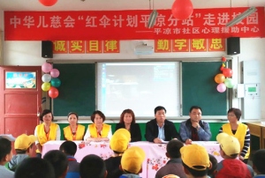 甘肃文明网;灵台县举行中华儿慈会“红伞计划”开课仪式2016-09-21近日,县妇联邀请国家二级心理咨询师、平凉市社区心理援助中心副主任王晓芳等5名红伞志愿者,深入中台镇坷台小学举行了中华儿慈会“红伞计划”留守儿童心理援助活动”的开课仪式。中台学区校长、坷台小学全体师生共计90多人参加了活动。 开课前,组织全体师生观看了“红伞”视频,使孩子们对“红伞计划”的工作性质、工作内容有了新的认识。开课仪式上,县妇联负责人参加活动并作讲话。 开展“中华儿慈会‘红伞计划’留守儿童心理援助活动”,目的是传递党政关怀,凝聚社会爱心,关注留守儿童健康成长。通过开展这次“中华儿慈会“红伞计划”留守儿童心理援助活动”,县妇联希望有更多的爱心企业、爱心人士和社会组织为留守儿童奉献爱心,共同建造留守儿童健康成长的快乐家园。同时,县妇联还为坷台小学的留守儿童捐赠了笔记本、羽毛球拍等学习体育用品110本(副)。 近年来,县妇联把关爱农村留守儿童工作作为一项重点内容,不断创新载体,完善关爱机制,开展关爱活动,旨在进一步加强对农村贫困留守儿童的动态跟踪和精准化、专业化服务,实施面对面精准帮扶,建立和完善农村贫困留守儿童关爱服务体系,为贫困留守儿童提供常态化、精准化、机制化帮扶。来源:甘肃文明网