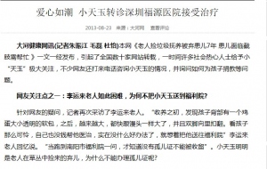 爱心如潮 小天玉转诊深圳福源医院接受治疗2013-08-26大河健康网讯(记者朱振江 毛磊 杜怡)本网《老人捡垃圾抚养被弃患儿7年 患儿面临截肢需帮忙 》一文一经发布,引起了全国数十家网站转载,一时间许多社会热心人士给予小“天玉”极大关注,不少网友还打来电话咨询小天玉的情况,并询问如何为孩子捐款等问题。 网友关注点之一:李运来老人如此困难,为何不把小天玉送到福利院? 针对网友的疑问,记者再次采访了李运来老人。“收养之初,发现孩子背部有一个鸡蛋大小透明的软包,之后,越来越大,都快跟馒头一样大了,并且双脚向里扣翻??春⒆幽敲纯闪?,自己也没钱帮他医治,实在没什么好办法了,就想着把他送往福利院”李运来老人回忆说。“当跑到南阳市福利院一问,才知道没有孤儿证不能被收留”。小天玉明明是老人在草丛中捡来的弃儿,为什么不能办理孤儿证呢? 带着疑问,记者又咨询了有关部门,“办理孤儿证所要求的条件是:凡具有本地户口、年龄未满十八周岁,失去父母,经户口所在地县民政部门审核,报市民政局认定批准后发给申请办理《孤儿证》的儿童”。文件中还特别指出“孤儿是指失去父母的儿童”。小天玉的确是被亲生父母遗弃,但是李运来老人收养之后帮他办理了收养证和户口,这样一来,李运来老人就成为了天玉的养父,因此不能办理孤儿证,也就被福利院拒绝收养了。 网友关注点之二:孩子大小便失禁,并且双脚溃烂面临截肢,治疗需要多少费用? 天玉大小便失禁,经常发炎导致肾脏受损,解决孩子大小便失禁就成了当务之急。记者在网上搜索,“肖氏反射弧手术”可以治疗大小便失禁,记者联系到了“肖氏反射弧手术”的创始人肖传国教授,据肖教授介绍该手术能治疗脊髓损伤或脊柱裂脊髓脊膜膨出所造成的大小便失禁,这种方法是将患者的运动神经嫁接到内脏神经上,形成了新的泌尿反射通路,从而达到根治大小便失禁的目的。 小天玉还有双脚严重畸形、溃烂流脓血长蛆。肖教授初步算了一下,治疗大小便失禁的费用是5万。经请全国著名矫形骨科专家会诊,得知如果在天玉这样严重感染的脚上开刀,又动骨头又动肌腱的,在没有感染的双脚做矫形手术双脚需要约十万元的费用,然而在小天玉这样严重感染的脚上做手术,需要的费用更多。肖教授还表示“手术是最开头一步,即使万事顺利,还要几次麻醉,还要打100天石膏,然后进行康复训练,之后还要定制矫形鞋,并且鞋的大小还要随孩子脚的长大不断调整,这又需要一笔不小的费用”。 肖传国教授表示,他们尽最大的力量帮助小天玉。目前他们已经将小天玉接至深圳福源医院接受治疗。 网友关注点之三:怎样才能为李天玉捐款? 就此记者联系到了首先发起救助活动的南阳市南都救助团队的雷克先生,“我们把孩子的情况反映给了中华少年儿童慈善救助基金会,他们了解孩子的情况后,为李天玉开通了捐助平台。 中华少年儿童慈善救助基金会捐款渠道: 网银或者支付宝在线: http://www.mogu88.cn/templates/donation/txxx.aspx?projectid=1524 银行汇款: 账号:320756027856 开户行:中国银行北京西翠路支行 户 名:中华少年儿童慈善救助基金会 请附言:9958-(李天玉) 捐款查询通道:http://www.mogu88.cn/templates/donationsearch/index.aspx?nodeid=106 爱心提示:在线捐助可立刻查询到捐赠号,银行汇款需两个工作日可查询。 来源:大河网 原文地址:http://health.gmw.cn/dzb/2013-08/23/content_2003895.htm