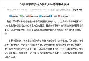 30多家慈善机构力促昭觉县慈善事业发展2013-09-02最近,国家民政部慈善促进处率中民慈善捐助信息中心、儿慈会等30多家慈善机构和40多名慈善专家到凉山州昭觉县与当地县委、县政府领导研讨如何营造慈善兴县等相关事宜。通过一天的研讨,形成了昭觉县营造慈善兴县的指导思想、基本准则和主要目标。 主要指导思想、基本原则和目标是:坚持“党委领导、政府推动、民间运作、行业发展、制度规范、全民参与”的发展方针,逐步完善促进昭觉慈善事业发展的规律刻度,形成“慈善引资”的具体方案,不断创新慈善载体形成,广泛传播慈善文化,加快普及慈善意识,鼓励公民、企业和社会组织积极参与慈善事业,形成推动慈善事业发展的强大力量。 做到“平等自愿、公开透明、鼓励创新,依法推进”四大原则,力争5年内到达“制度完善,作用显著,管理规范,健康有序”的慈善事业发展格局,让慈善事业促进昭觉县改善民生、社会和谐,推动社会文明进步。 来源:四川在线凉山频道 原文地址:http://sichuan.scol.com.cn/lsanxw/content/2013-08/30/content_5962842.htm