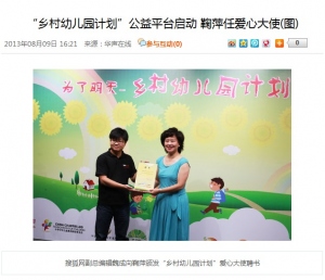 乡村幼儿园计划”公益平台启动 鞠萍任爱心大使2013-08-128月8日,由搜狐公益频道、母婴频道联合中国儿童少年基金会、中华少年儿童慈善救助基金会、互满爱人与人中国等10余家公益机构共同发起的“乡村幼儿园计划”在搜狐媒体大厦启动。央视著名主持人鞠萍作为该公益活动爱心大使亮相,在这个计划支持下开班的首个幼儿园聘请著名演员姚橹任名誉园长。今后,各家公益组织将通过该平台相互合作,共享资源,解决贫困地区幼儿无“园”可上的现状。 鞠萍担任“乡村幼儿园计划”爱心大使 学龄前是孩子意识、认知的形成期,因此启蒙教育对孩子的成长至关重要。然而,我国目前的幼儿教育发展并不均衡,很多贫困地区的幼儿教育仍是空白。“乡村幼儿园计划”就是在这一现状下应运而生,旨在用媒体的影响力、公益机构的行动力、民众的参与力推动乡村幼儿学前教育体系建设,帮乡村孩子们构建五彩童年。 作为一名从事了近三十年少儿节目工作的著名主持人,鞠萍对幼儿教育有许多独到见解,在当天的活动中,鞠萍与现场观众分享了她的切身感受。此次受邀担任“乡村幼儿园计划”爱心大使,鞠萍表示,今后,她将身体力行地帮助贫困地区的幼儿,推动乡村幼儿教育的发展。“我觉得能够有这样一个机会回归我原来的职业本身,特别的幸运和骄傲。把我在学校学的一些专业、理论用在这样一项公益事业当中是我非常愿意做的事情。我也期待能够到几所乡村幼儿园中,去给他们举办开学典礼,陪他们上课,陪他们做游戏,带给他们一份爱的温暖。” 贫困山区幼儿无“园”可上 启动仪式上同时发布了由四川师范大学教育科学学院实施的“乡村幼儿园调研”报告。担任此次调研的彭俊英老师表示,在地理位置偏僻、人口稀少、交通不便利的农村自然村,幼儿无“园”可上的现象非常普遍。另一方面,通过对家长的访问,偏远山区农村家长送子女入园的需要非常强烈。三到六岁的散居儿童在性格、语言表达、生活习惯、交往能力等方面与入园儿童相比差异明显。 据介绍,今年6月,彭教授走访了云南地区多个自然村落,通过调研得出一系列论据证明乡村的幼儿园对孩子的各方面成长都有很大帮助。 “乡村幼儿园计划”公益平台正式上线 伴随着该公益平台的启动,建立在搜狐公益的“乡村幼儿园计划”官方网站也同时上线,今后全国各地从事幼儿教育的公益组织将不断加入其中,通过网络平台实现资源共享。官网除关注幼儿教育新闻,加强各家公益机构的相互合作外,也将以1个月为周期,开设重要板块,集中对一家公益机构进行宣传、展示,发动网民的力量帮助公益机构开展乡村幼儿教育工作。 与此同时,“乡村幼儿园计划”公益平台还将结合各家公益机构的特点,有针对性的开展筹建幼儿园、改善设施、师资培训等一系列线下的关爱活动,并邀请该平台的爱心大使,及社会各界公益人士一同前往贫困地区看望小朋友,帮助他们健康快乐的成长。 演员姚橹担任首位名誉园长 目前,发起单位之一的互满爱人与人已通过“乡村幼儿园计划”公益平台募集25万元善款,可在云南乡村新建5所幼儿园。 启动仪式上,著名演员姚橹从互满爱人与人中国代表迈克尔•海尔曼手中接过了聘书,正式成为云南镇康县刷布厂村未来希望幼儿班的名誉园长。该幼儿班预计9月1日正式开班授课,从此解决刷布厂自然村没有幼儿园的状况。“我特别骄傲,我愿意用我的后半生努力做好这件事情。“被授予名誉园长的姚橹表示。 附:“乡村幼儿园计划”发起单位 搜狐公益 搜狐母婴 中国少年儿童基金会 中华思源工程扶贫基金会 中国下一代教育基金会 中华少年儿童慈善救助基金会 中国社会福利基金会索玛花联合劝募基金 北京市西部阳光农村发展基金会 北京谷雨千千树教育咨询有限责任公司 互满爱人与人 新居民活动中心 来源:华声在线 原文地址:http://www.chinanews.com/df/2013/08-09/5146075.shtml?qq-pf-to=pcqq.c2c