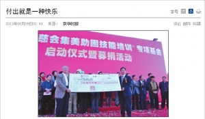 付出就是一种快乐2013-08-12作为京城的老牌家居卖场、中国家居业的主力军,集美家居的公益历程甚至可以追溯到“集美”这个品牌出现之前。在长达30年的时间里,集美从没有忘记自己对于社会的责任和担当,持续投身公益事业,目前已经累计捐款数千万元。在集美掌舵人赵建国的心目中,致力公益不但是个承诺,更是一份责任,一种使命。 京华时报记者马希 品牌公益史 集美家居给出的官方数据是企业公益历程始于1989年,但在集美集团总裁赵建国的记忆里,自己得到的第一面关于公益的锦旗,应该还要早于这个记录好几年。 1989年,建国木器厂有了一定原始积累。赵建国拿出10万元为家乡打了一眼深水井,让小赵庄父老乡亲告别了饮用苦涩污水的历史。两年后,再度捐资为家乡修了一条柏油路,当地老乡称为“建国路”。 2003年,在抗击“非典”斗争中,集美向抗击“非典”一线医护人员捐赠总价值350万元的18万只保温杯。因在抗击“非典”中的义举,赵建国荣登2003年福布斯中国大陆慈善家排行榜第46名。 2006年,集美集团通过北京希望工程建立“建国教育奖励基金”,用于奖励精心教书潜心育人的优秀教师,多年持续向基金注资,总额达305万元。 2007年11月,集美向丰台区慈善协会捐款30万元,并出任协会副会长。 2008年5月,集美集团多次向四川汶川地震灾区捐款,累计总额412万元。当年,集美集团各种捐助款项共计459.4万元。 2009年5月,集美再次为四川汶川灾区学校捐款20万元。6月,集美投资60万元,帮助大兴区礼贤三村建设了商业和村委会办公用房。 2011年,集美集团捐资300万元,支持北京市密云县不老屯镇史庄子村新农村配套工程建设,被首都慈善组织联合会评选为“商界彩虹心”。 2012年10月,集美集团建立了“中华儿慈会集美助困技能培训专项基金”,首批注入资金500万元,为帮助贫困地区青少年技能培训、解决就业,建立了基金保障。 2013年4月,雅安地震后,集美国际酒业将红酒以总经销价爱心义卖,筹集150万元捐赠给灾区。5月,吴桥集美希望小学暨吴桥集美教育奖学金启动。集美家居向马库吏等三所集美希望小学捐赠160万元。 钱财乃身外之物,付出是一种快乐。 —集美集团总裁赵建国 公益故事 为大义放弃18年心血 记者请赵建国讲讲这几十年公益道路上让他难以忘怀的故事,他倒觉得平时的捐款捐物称不上真正意义上的公益。“真正算得上公益的,应该是在民族大义面前,懂得顾全大局,舍弃小我的利益。”虽然2000年,集美的五棵松大拆迁,并没有载入集美的公益史,但在赵建国心目中,那才是集美对于社会、对于国家最大的一次贡献。 赵建国回忆,当时五棵松集美家具城被划入奥运场馆的建设范围,必须拆迁。作为当地最大商户,周边商家都唯其马首是瞻。所以集美的一举一动都关系到整个拆迁商圈的动向。“当时场馆建设迫在眉睫,国家用于此处的资金又有限。”在别人都想着为拆迁款讨价还价的时候,赵建国最终作出了一个让所有人都意想不到的决定:“我们不要国家一分钱,无偿拆迁!”赵建国笑言,当时自己也是几夜在被窝里翻来覆去睡不着,最终狠下心才作出了这个决定。“面对着民族大义,牺牲小我。” 于是赵建国动员了当时的600多名商户随自己无条件撤出。将自己18年的心血,6万多平米的卖场就这样无偿奉献给了国家,各种经济损失过亿。随后,集美又重新开始。“这600多商户的人情债我也还了很多年。那几年里,无论怎样,都拖着拽着让他们和集美一起发展。这些商户里,后来有做不下去撤场的,集美还给补贴。这在其他卖场里是不能想象的。就是因为我记挂着当初他们对我这个决定的支持。” 集美那次无偿大拆迁,不但蒙受了过亿的损失,同时也拖慢了自身发展的脚步。“因为这件事,集美确实比其他一些卖场扩张脚步晚了不少。”但赵建国直言,毫不后悔。“我感觉,自身有了发展,并不是自己多么有才能,而是赶上了好时候、好政策。因此,要懂得回报社会。” 公益情怀 回报社会是我的承诺 根据集美官方提供的数据,赵建国第一次捐助是花10万元为家乡打了口深水井,时间在1989年。记者记忆中,上世纪80年代,哪里出了万元户都是备受瞩目的事。当时才刚刚有所积累的赵建国,有着怎样的胸怀,一下拿出10万元巨款呢? 赵建国的回答干脆而轻松,“钱财乃身外之物,付出是一种快乐。”“几十年前,我向学校递辞呈的时候就明确说过,我出来创业并不是为了自己发财,有了发展一定要回报社会。”赵建国笑言,在1989年10万元的捐赠前,还有更大的“手笔”。1987年,一名叫杜丽丽的年轻教师,为了救学生丧生,当时有关部门想为该教师拍摄电视剧,但是无人应承。于是刚刚起家不久的赵建国独自出资60万元,就找人筹划剧本,拍了三集的电视剧,在当时的中国教育电视台播出。 为了饯行自己的承诺,这些年,赵建国也被人误解过。上世纪80年代,赵建国就想成立自己的教育基金,但是反倒被人嘲笑,“傻,有钱没处花”。“当时把我气得够呛,但是我最终还是在日后完成了这个想法。” 有一个热心公益的领头人,整个集美集团也有了与众不同的气质。用赵建国的话来总结,首先,就是以大局为重。2003年,在大拆迁里元气大伤的集美,又遇到了非典。当时各行各业日子都不好过,但是刚刚有所恢复的集美,又几乎拿出了自己的所有—350万元的物品,捐赠给战斗在抗击非典第
