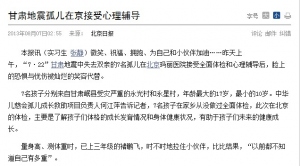 儿慈会迎接地震孤儿来京休养2013-08-012013年7月30日下午3点半,7•22甘肃地震中失去双亲的7名孤儿乘G656次列车抵达北京西客站。中华儿慈会常务副秘书长王林及工作人员在车站迎候了这批特殊的客人,给这些刚刚失去双亲的孩子送去了首都人民的问候。 7月22日甘肃省定西市岷县、漳县交界发生6.6级地震后,中华儿慈会工作人员当天就到达灾区了解灾情,制定各种救灾方案。26日,当得知灾情最严重的地区出现因地震失去双亲的孤儿后,立即派出孤儿成长项目负责人何江萍赶赴灾区,进一步了解详细情况。在给这些孩子送去首都人民的问候的同时,决定将这些孩子接到北京做短期休养,让他们感到有更多的亲人在关心他们。 27日,何江萍抵达岷县,在甘肃卫视陈璇主任的陪同下前往孤儿生活的地方——此次灾情最严重地区之一的梅川镇永光村。由于近日大雨,山路泥泞,汽车无法通行,一行人步行到达永光村。在镇领导的陪同下,他们找到孩子,办理了相关手续,又经过几个小时的步行,把这几个孩子带出大山。一路上,这支特殊的队伍受到爱心人士的热情接待,终于乘上G656次列车来到北京。 中华儿慈会的孤儿成长项目成立于4·14玉树地震之后,曾组织休养营,接收了百余名玉树孤儿在北京休养,现在还负责这百名玉树孤儿的学习和生活一直到18岁。 此次甘肃地震发生后,中华儿慈会制订了1000个生活包救助灾区的孩子。此次接来这些地震中失去双亲的孤儿,中华儿慈会将为他们安排全面体检,继而进行心理辅导,同时还会为他们安排丰富多彩的活动,让他们在首都人民爱的怀抱中,感受全国人民对他们的关心。