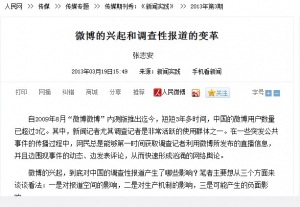 微博的兴起和调查性报道的变革2013-03-20自2009年8月“微博微博”内测版推出迄今,短短3年多时间,中国的微博用户数量已超过3亿。其中,新闻记者尤其调查记者是非?;钤镜氖褂萌禾逯弧T谝恍┩环⒐彩录拇ス讨?,网民总是能够第一时间获取调查记者利用微博所发布的直播信息,并且边围观事件的动态、边发表评论,从而快速形成汹涌的网络舆论。 微博的兴起,到底对中国的调查性报道产生了哪些影响?笔者主要想从三个方面来谈谈看法:一是对报道空间的影响,二是对生产机制的影响,三是可能产生的负面影响。 一、对报道空间的影响 根据多数调查的感知和判断,过去10年,一些地方政府“防火防盗防记者”的阻挠手段,增加了调查取证的难度和监督报道的风险,也让不少调查记者深感生存状况堪忧。面对相对严苛的管制环境和逼仄的报道空间,过去两三年间,微博的运用快速成为调查记者“打擦边球”、“抢时间差”的核心渠道,甚至成为他们进行“边缘突破”和“社会动员”的主要平台。具体来看,微博对调查报道空间的积极影响,主要体现在三个方面。 1、快速发稿、抢占先机。不少调查记者已经习惯于通过个人微博或媒体微博,第一时间在新闻现场发布滚动消息,抢先发布消息。这种做法确实很有用。过去,调查记者做公共突发事件的报道,通常都是采访一周、半个月,回来写出长篇深度报道,再发表在报纸或杂志上。如今,在很多公共事件中,我们看到一些记者抢先在微博上快速发布现场信息,尽管比较碎片化,但也有利于短时间内引起公众的热切关注,并与网友目击或草根爆料形成协同。 微博的病毒式、爆炸式传播效能,有利于增进信息公开的力度、提供信息突围的可能,从而积极推动舆论监督和调查报道的空间。一般来说,这种情况比较适用于重大公共突发事件的调查报道,不存在为了追求独家报道而对采访行踪进行保密的可能。 2、公众围观、形成压力。公众对政务微博的网络围观,或对公共事件的热切关注,有利于推动相关责任部门通过微博来新闻发布、做出表态,从而给媒体的跟进报道提供空间或打开缝隙。我们通常讲,2010年是“微博元年”,2011年是“政务微博元年”,而2012年可以说是“媒体微博元年”。当越来越多的政府部门开设微博,使其新闻发布和信息公开工作从后台走向前台。过去,政府搞新闻发言人制度,可以躲在舆论“广场”的后台,当老百姓情绪太激动,造成的舆论压力太大了,政府部门就把新闻发布台搬到“广场”当中召开新闻发布会,进行简要发布和舆论引导。现在,身处微博时代,一旦开设政务微博,躲躲闪闪的传统做法就不管用了——你开设了微博,相当于把自己放在“广场”当中,尽管还有个半透明的罩子把你罩着,但你必须随时接受公众的围观、质疑和批评。 公共?;录⑸螅绻挥屑笆狈⒉颊嫦?,公众会用网络围观形式来“扔香蕉皮”甚至“鞭尸”。就像有一个人就在你面前不断骂你,你又是在广场当中,你不得不回应。有时候,这种网络围观会逼迫一些政府微博公开表态。可见,舆论的力量正以前所未有的姿态参与、影响调查性报道。 3、微博传播、边缘突破。由于商业压力或者自我审查,一些调查记者完成的报道,无法最终刊登在报刊上。过去,在论坛和博客兴盛的时期,少数调查记者也会将未刊发的报道发布到网络论坛或个人博客中去,从而引起高层领导或社会各界的关注。比如,当年《瞭望东方周刊》的调查记者孙春龙,就是利用自己的博客发布了针对某省垮坝事件的报道,才引起了中央领导的重视和批示,从而使胎死腹中的报道重新复活。现在,也有不少调查记者开始充分利用微博作为突破管道,如果报道没有正式刊发,则利用长微博的方式发在微博上,通过邀请同行、学者的转发和评论,短时间里形成热点;或者,将报道贴在博客或论坛之后,在微博上加以推荐、附上链接,也容易造成影响。 二、对生产机制的影响 传统的调查性报道生产机制,往往是记者耗费比较长的时间、比较高的成本来进行调查、取证和写作,然后利用报纸或杂志比较大的篇幅,一次性推出长篇报道或者陆续推出系列报道。而伴随媒介融合的发展要求和新闻生产的机制再造,调查性报道的生产机制也在发生变革。从消息来源的获取、报道议程的设置、背景资料的检索,到采访对象的沟通、报道信息的传播、调查报道的推广,微博的作用几乎渗透在调查报道采写的全过程。 1、信源跟踪。现在,很多公共事件是在微博上兴起、发生和扩散的,微博既为传统媒体设置议题,又直接提供了跟踪、观察事件的重要空间,还给调查记者寻找采访消息源、受访者或知情人士提供了便捷的途径。很多公共事件的当事人,第一时间在微博上开设帐号,利用微博来进行事件的滚动直播,报道这些事件的记者必须随时跟踪、密切关注。 据笔者所知,少数报社正在重塑公共事件的报道机制。现在,重大新闻事件发生后,一方面会立即派人去现场进行采访,了解事件原因和公众反馈;另一方面要派人找政府等责任部门,了解应对措施、调查幕后真相?;褂幸环矫嬉卜浅V匾褪桥勺ㄈ嗽谕纤鸭髦指餮癖系男畔?,进行海量搜索、仔细爬梳和深入分析,透过蛛丝马迹、寻找知情人进行采访。因此,媒介组织内部专业化的新闻生产,跟外部公众社会化的新闻生产正在形成协同共振。这种新型的生产方式,