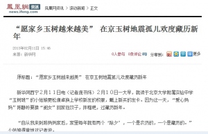 “愿家乡玉树越来越美” 在京玉树地震孤儿欢度藏历新年2013-02-20新华网西宁2月11日电(记者庞书纬)2月10日一大早,就读于北京大学附属实验中学“玉树班”的小姑娘更松康卓换上学校新发的校服,戴上新买的发卡。因为这一天,“爱心妈妈”陈静玲要接“闺女”回家包饺子,拌糌粑,过藏历新年。 “自从我来到陈妈妈家后,家里每年就有两个‘除夕’,一个是农历的,一个是藏历的。”小姑娘得意地对记者说。 2010年“4·14”地震发生后,中华少年儿童慈善救助基金会启动灾区“百名孤儿成长救助计划”,在北京、安徽等地成立“玉树班”,先后接受玉树地震孤儿100多人,其中60人在北京就读。 “刚开始,孩子们或多或少出现一些不适应,包括气候、语言、饮食等方面。为了让他们尽快融入新生活,我们专门请中央民族大学的几位藏族志愿者对他们进行辅导。”“百名孤儿成长救助计划”负责人何江萍说。 何江萍告诉记者,为了让孩子们能从失去亲人的阴影中走出来,重新感受家庭的温暖,基金会面向社会招募“爱心父母”。“没想到报名非常踊跃,经过筛选,最后确定了60多对夫妇。” 如今,更松康卓早已成为陈静玲一家不可或缺的成员。“我现在就管爱心妈妈叫阿妈,管爱心爸爸叫阿爸。每到节假日,阿妈阿爸都要准备一大桌好吃的东西。”更松康卓说。 玉树位于青藏高原腹地,是远近闻名的歌舞之乡。“在和玉树孩子的接触中,我发现他们个个能歌善舞。2010年底,基金会成立了‘玉树天使艺术团’,聘请著名舞蹈家刘岩担任团长。”何江平说。 走进艺术团的排练厅,记者看到孩子们正在排练藏族舞蹈。15岁的小姑娘索南拉毛告诉记者,这次排练的是艺术团自编的舞蹈《雪域雄鹰》,2月11日藏历新年那天将在国家大剧院首演。 在刚刚结束的2013年艺术类高考中,在京就读的玉树地震孤儿中有7人报考,全部超过录取分数线。“一个叫才仁卓嘎的小姑娘,演唱的《青藏高原》和《天路》得了满分,惊艳全场。”何江萍说。 今年夏天,在京就读的玉树地震孤儿中,将有18人参加高考,江巴欧周是其中成绩最好的;在不久前结束的模拟考试中,他的藏语几乎得了满分。这个寒假,“爱心父母”陈冬牛一家让江巴欧周住在家里,还专门请家教为他补习数学、英语两科。 “孩子特别刻苦,也特别懂事,按这个势头发展,考个‘一本’问题不大。”陈冬牛说。 不知不觉,时钟指向零点,藏历水蛇新年已经到来,江巴欧周和“爱心父母”一家相拥庆祝。当问及新年愿望时,江巴欧周说:“去年我回了趟玉树,变化之大让我吃惊,愿家乡玉树越来越美。我想考中央民族大学,学个与藏文化相关的专业,将来向世界好好宣传美丽的家乡。” 来源:新华网 原文地址:http://news.ifeng.com/gundong/detail_2013_02/11/22112251_0.shtml