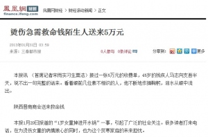烫伤急需救命钱陌生人送来5万元2013-02-04本报讯 (首席记者宋雨实习生粟洁)接过一张5万元的收费单,45岁的残疾人马志向支吾半天,说不出一句完整的话来。看着眼前几位素不相识的人,他不断地作揖鞠躬,泪水从眼中流出。 陕西晋商商会送来救命钱 本报1月29日报道的“1岁女童掉进开水锅”一事,引起了广泛的社会关注。很多读者打来电话,在为烫伤女童的病情揪心的同时,也为这个贫寒家庭的未来担忧。 报道见报当晚,西安立丰企业集团董事长、陕西晋商商会会长颜明看到本报报道后,连夜发出号召,请晋商商会的各位老乡们,出把力帮帮忙。 “看到报道后,心里很难受,都是为人父母的,就想着为这个女童做些什么。”昨天下午4点,晋商商会常务副会长兼秘书长姚剑锋、公益部部长崔里原来到本报,催着记者说:“我们赶紧去医院,早一分钟就多一份希望。”4点半,唐都医院一病区大厅内,较早前赶到的晋商商会爱心企业家卫高文、邓艳虎焦急地排队等着电梯。17楼的病房,静静的爸爸下楼买饭,姑妈陪在孩子身边。从25日住院至今,静静的病情稍有稳定,但目前仍处在休克期,尚未脱离生命危险。 担心感染,姚剑锋等人在征得护士长同意后,分成两拨,踮起脚尖向病床靠近,进病房前,几个人不约而同关掉手机。 “娃还休克着……”静静的姑妈有些不好意思,又有些难过:“谢谢你们。” 看着静静的气管被切开,崔里原眼圈泛红,揽住了静静的姑妈,头向她靠了过去。“孩子遭了这么大的罪,父母还都是残疾人……没想到你们这么苦。” 病房外,崔里原的情绪还有些波动:“我也是个当妈的,我不知道说什么好。” 5万元治疗费已先期到位 5点,静静的父亲马志向买饭回来。看到女儿的病房外站了一大群陌生人,他倚靠着走廊的扶手,不知所措。 护士长告诉他,这些人都是来看望静静的。他撂下手里的饭,有些不知所措,“谢谢,谢谢。” “因为时间仓促,我们从商会的公益金账户里,先拿出5万元给孩子治病,”姚剑锋说,在陕的晋商商会的每一位企业家愿意尽一点微薄之力,同时带动更多的人,帮助静静一家人走出难关。 为了不耽误静静的治疗,姚剑锋现场将5万元打进了静静的住院账户。后续还会给予关注和帮助。 昨晚9点,长期致力于慈善公益事业的爱心作家张红喜告诉记者,他已经将静静的病情申报了中华少年儿童慈善救助基金会9958(救救我吧)紧急援助项目,“会在第一时间争取援助资金,解决静静一家人的后顾之忧。” 一岁女童掉进开水锅手术费要20万后续 来源:三秦都市报 原文地址:http://finance.ifeng.com/roll/20130131/7627001.shtml