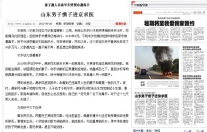 山东男子携子进京求医2012-09-07上周,来自山东的小洪旭获得捐助来京治疗,目前情况比较稳定,但后续手术费用仍有缺口。2010年5月,不到半岁的昌洪旭和母亲在家中惨遭毒手,孩子头部受重创引起脑积水,母亲被杀害。两年以来,这个家庭为孩子看病先后花了20多万元,父亲昌先生一直不离不弃,甚至想过卖器官换钱。