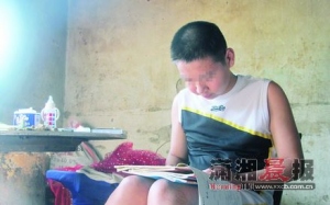 7月28日,身高1.75米、看起来比较健壮的唐盟(化名),在湖北鹤峰县燕子乡卫生院一间危房里翻开了暑假作业。他今年14岁,患有再生障碍性贫血,家里已为他花费了七八十万元,而今,他仍处在治疗期。