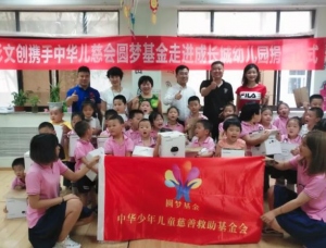 【中华网】中影文创携手中华儿慈会圆梦基金走进成长城幼儿园2019-09-19少年儿童作为每个家庭的重点关注对象,他们的健康、平安是每个家庭最大的心愿。少年儿童是祖国的未来,关注、爱护少年儿童是社会文明进步的重要标志。 2019年8月12日下午,中影文创影视文化有限公司(以下简称中影文创)携手中华少年儿童慈善救助基金会(以下简称中华儿慈会)为北京成长城幼儿教育的30名小朋友送来了爱心机器人和300多本爱心读物。 参加本次捐赠活动的有:中影文创影视文化有限公司董事王洋、德成影业集团董事长康敬德、中华儿慈会圆梦基金管委会主任冯昌栋、北京成长城幼儿教育负责人张小静、圆梦基金爱心大使博弘老师、钟小丹老师,以及接受爱心帮助的幼儿园小朋友代表。 北京成长城幼儿教育目前暑期在校小朋友有30余名,正在午休的小朋友门突然看到来的叔叔阿姨们,一个个小脸蛋儿洋溢着灿烂的笑容,按捺不住内心的喜悦开心地活蹦乱跳,一瞬间没了睡意。 此次爱心捐赠活动由北京成长城幼儿教育张小静老师负责主持。 首先张老师代表幼儿园对大家的到来表示热烈欢迎,感谢中影文创及中华儿慈会圆梦基金对孩子们的爱心捐助,并表达了对这份来自社会的爱的支持与肯定。 中影文创影视文化有限公司董事王洋表示:希望这次爱心捐助活动可以给小朋友带来不一样的温暖,让他们感受到爱的力量,也希望他们可以茁壮成长,成为社会栋梁之才。 中华儿慈会圆梦基金爱心大使博弘老师、钟小丹老师现场为小朋友分享了有趣的知识,孩子们争先恐后的想要发言互动,画面超有爱哦。 温暖看到小朋友灿烂的笑容,我们也是幸福的。 接下来就是为小朋友发放爱心物品的时候啦,看看现场热闹的画面,就知道小朋友们有多开心了! 中华儿慈会是2010年成立的具有民间性质的全国性公募基金会。通过募集社会资金,开辟民间救助通道,对社会上无人监管抚养的孤儿、流浪儿童、辍学学生、问题少年和其他有特殊困难的少年儿童等进行救助。 中华儿慈会圆梦基金主要针对英烈后代及困境少年儿童心理、医疗、助学、生活(资金和物品)、技能五个方面展开救助工作,并组织开展或参与公益演唱会、公益电影拍摄等活动,通过媒体传播等方式,让社会感知温暖,了解慈善,唤醒每个人的善念,爱在人间,圆梦童行。最后附几张超萌哒小朋友照片: 公益洗涤心灵 中影文创让爱继续传递