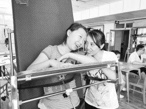 【燕赵晚报】母爱相伴 脑瘫女儿上学妈妈“陪读”2018-08-29接受着专业的康复训练,慧慧和母亲王转芳都很开心,母女二人对将来也充满了希望。 慧慧在接受康复训练中 好心人通过单位捐善款 小姑娘来石接受正规康复训练 12年前,山西大同,一名可爱的女婴呱呱落地,但是,幸运女神却没有眷顾到她。身为早产儿,这个女孩最终被确诊为脑瘫,生活完全不能自理。面对可爱的女儿,她的父母没有轻言放弃,一直努力寻找为孩子治疗的良方,尤其是女孩的母亲,更是24小时陪伴在女儿身边,照顾她的生活起居和学习,成为村里唯一一位“陪读妈妈”。今年暑假期间,女孩在爱心机构的帮助下,终于有机会来石接受正规的康复训练。 □文/图 本报记者 李兵 12岁女孩的笑容 让她的母亲感到了欣慰 8月24日10时许,记者来到石市第一医院康复科。此时,12岁的慧慧(化名)正在接受肢体康复训练。 “现在我会抬起你的下肢,一定要撑??!”当康复师用手将慧慧的左腿抬到半空后,小姑娘的脑门上瞬间流下了不少汗,但面对身旁的母亲,慧慧咬牙坚持着。 随后的时间里,康复师又针对慧慧的身体情况,分别对她的上肢及腰部等部位进行了训练和调整。对于近段时间每天上午3个小时的康复训练来说,年少的慧慧已经从最初的不适开始渐渐习惯了。来到医院已经半个月,虽然在训练中她也会经常低声喊出“疼”字,但一看到终日陪伴在自己身旁的母亲,慧慧立刻就会露出天真的笑容,努力咬牙坚持着。 这一天,也是慧慧在石家庄的最后一天,随着小学开学的来临,慧慧一家人即将回到山西老家??醋排成系男θ荩丫谒肀哒惆榱耸甑哪盖淄踝己苁切牢?。从慧慧一出生开始,母女俩就终日“形影不离”,这期间,有着太多的无奈。 生下爱女竟是脑瘫儿 2006年,家住山西大同农村的王转芳,生下了她和丈夫刘彦平的爱情结晶慧慧。只不过,慧慧是个早产儿,只在母亲的肚子里呆了7个月,出生时只有2斤9两。在当地医院的全力救治下,慧慧终于保住了性命。 幸运女神并没有一直眷顾这名年幼的女婴,慧慧五六个月的时候,王转芳和爱人发现女儿的身子骨很“松软”,也不会自己翻身。经过当地医院的诊断,判断是因出生时的缺血和缺氧造成营养不良,医生随后开了一些营养药给慧慧“补身子”。 即便如此,慧慧的身体状况依然不容乐观。1岁的时候,慧慧最终被确诊为脑瘫。这样的结果,让王转芳和丈夫一时难以接受,但只能无奈面对。抱着心爱的女儿,王转芳不知道自己应该何去何从。 日子一天天过去,慧慧始终无法学会爬行和站立,即便是家人帮着她做一些简单的肢体动作,慧慧也是特别费劲儿。同时王转芳还发现,慧慧的智力水平,远比同龄人低。每次听到旁人说起自己女儿得了“白痴病”,无力反驳的王转芳只能偷偷落泪。 “陪读妈妈”为女儿生活费尽心力 “孩子是咱们生的,不能不管,更不能放弃!”面对慧慧的情况,王转芳和丈夫做出决定,不再生二孩,专心把慧慧养大,尽全力让女儿接受相关康复训练。为此,夫妻俩把家里唯一的房子卖掉,踏上了为女儿求医的道路。夫妻俩带着慧慧投奔到内蒙古的亲戚家,四处寻医问药,想办法给慧慧治病。 在慧慧6岁的时候,夫妻俩带着女儿回到山西老家,暂住在亲戚家中?!昂⒆右丫搅松涎У哪昙?,只有在老家才能够顺利入学?!本驼庋?,刘彦平开始在外打工挣钱,王转芳则专心照料慧慧的生活起居。 慧慧被送进学前班后,上午上课,下午去当地诊所接受康复训练。3年之后,王转芳又把9岁的慧慧送进了村里的小学学习。白天没时间去诊所,王转芳就晚上在家里用自己从诊所“偷师”来的技术给女儿做康复。 “孩子基本没有生活自理能力,学习期间会遭遇很多困难,怎么办?”想到慧慧的状况,王转芳思来想去,决定陪着女儿一起上学,时刻守护在慧慧身边来照顾她。生活起居的照顾,对于王转芳来说并不困难,但一说起上课,王转芳这位农村妇女就有点儿“不自然”了。慧慧上的是普通农村小学,身边都是年幼的小孩子,活泼好动,只有慧慧无法离开自己的座位。迎着周围有些异样的目光,王转芳几乎是把女儿“绑”在了自己身上,慧慧要去哪儿,王转芳就把她背到哪儿。 “这个字要先写横,再写竖,你的顺序错了,别着急。”由于慧慧掌握不好握笔的方式,书写很慢。每堂课的学习,都是王转芳先抄好笔记,然后再一笔一画地教给女儿。虽然自己有时候也会因女儿做不好而着急,但每次心情平静下来之后,王转芳还是耐心地从头教起,不放弃任何一个可以让慧慧自学的机会。 就这样,从清晨起床帮助慧慧穿衣服、刷牙洗脸,到陪着慧慧上课,一起抄笔记做作业,再到晚上回家给慧慧做康复,以及平常的吃饭、上厕所,王转芳这位学校里唯一的“陪读妈妈”,把所有的心思都放在了女儿身上。到如今,王转芳已经和慧慧一起“读”了三年小学。 脑瘫女孩接受正规康复训练 解冰,是中华少年儿童慈善救助基金会儿童食品安全的项目负责人。生活在石家庄的她,原本和王转芳一家人并没有交集,但在2016年一次偶然的机会,解冰从朋友口中了解到了慧慧的情况。 同样身为母亲,解冰被王转芳这位好妈妈感动了。她同时也了解到王转芳一家人窘迫的生活条件。对此,在向单位递交相关申请材料后,经过解冰的努力,基金会开始每个月援助给王转芳2000元爱心款,帮助这个家庭减轻一些负担。 “除了正常生活