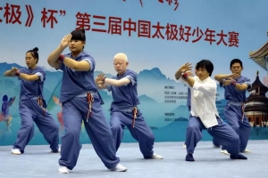 【人民网】中华儿慈会助力“中国太极好少年”活动 圆残障儿童国学梦2018-07-21人民网北京7月20日电(记者 潘跃)7月19日,中华少年儿童慈善救助基金会(以下简称:中华儿慈会)“侠友太极”项目发起的“第三届中国太极好少年大赛总决赛”闭幕式在京举行。本次活动由中国武术协会、北京市体育总会、北京市西城区体育局主办,来自侠友太极书院的孩子们为现场观众献上了精彩绝伦的《非视觉太极之塞上曲》表演。 参与现场表演的“侠友太极”的小演员们都是视力障碍儿童,他们来自大连、成都、泰安等地的“侠友心·太极梦”项目学校。来自成都市特殊教育学校的玉娇,现在正准备考大学。她分享说,“太极帮助我纠正了盲态,强调立身中正,改掉了我驼背,弯腰,走路姿势很斜的这种状态,让我改掉了坏习惯。另外练太极拳还能促进身体整体的素质,我把太极的劲和用力方式应用到其他运动,比如跳绳,对我帮助很大。”
