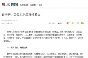 崔子研:公益组织要理性救灾2014-10-0910月7日21时49分云南省普洱市景谷傣族彝族自治县遇6.6级地震,云南人民又遭灾创,全民痛楚。关注灾难,帮助灾区,人人有责。各公益组织近年来在灾难面前大有作为,大显身手,大受赞誉,大得发展。因此,在灾难面前公益组织的表现已成为灾难之中的另一个热点。但细忖之,还应强调理性。 一、配合政府,理性应灾 世界各国应付灾难均由政府统筹,好像尚无例外。在灾难面前,政府的组织、政府的力量、政府的优势是第一位的。在我国抗灾抢险一向由政府、军队等国家力量直接组织参与,不是任何社会组织能替代的。在灾难来临时,从中央到地方首先保证的政令畅通、组织有序、及时救援、保障生命、调剂资源、科学管理等,在这种情况下,各公益组织都不是突出自身表现的时刻,而是显现自身作用在大局中需要的时刻。各公益组织不宜在此时抢挤交通资源、生活资源、媒体资源、系统资源等,在急切的救灾格局中露一把名、上一次像、出一阵声、获一群赞,如果这样就有违公益慈善了。救灾主导者是政府,不是哪个公益组织,请尊重政府、体切灾难、剔减私益、绝不添乱。 二、突出宗旨,实现救灾 各公益组织是有自身宗旨的,在灾难面前都可参与。不论是抢险、医疗、教育、环保、防疫、营养、心理康复等等一切,都可依据自身宗旨、使命,引导社会资源,参与救灾之中。重要的是,不是体现在去灾区观摩的人有多少,而是给灾区带去的帮助是多少。现在各公益组织非常重视第一时间赶赴灾区,其实远不如第一时间根据宗旨、使命为灾区做些必要的设计和努力。公益组织在救灾的作用上不是拼比给灾区送了多少钱,去了多少人,在灾区睡睡袋住帐篷多久,而是拼比对灾区的关注心、调动力、示范性、真效果。 三、发育自身,防灾减灾 在公益组织发展的今天,在自然灾害频繁发生的当下,公益组织与自然灾害的关系也应常态化。所谓常态化就是一种良性的互动,一是公益组织以宗旨对灾难,每一个组织都要根据自身的宗旨,强化建设,增加实力,理顺机制,对可能发生的灾难做有常态的准备,一旦灾难发生即可根据自身宗旨启动救灾机制,而不是手忙脚乱,募钱募人,盲目追大,一味求多,脱离宗旨,无所适从,误导社会,扰乱统筹;二是根据自身宗旨,规范行为,形成制度,一以贯之地进行防灾减灾的社会宣导。所谓宣导,就是在贯彻自身宗旨的前提下,将公益关怀始终置于防灾减灾情景之中,使自身的公益目的始终处于在灾难来临时的常态之中,以求防灾减灾的常态长效。 -
