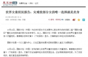 世界女童状况报告:灾难致部分女孩唯一选择就是卖身2013-10-1510月11日,国际计划(中国)与北京农家女文化发展中心联合举办的庆祝第二届“国际女童日”暨社会性别和减灾研讨会在京举行。会上,国际计划(中国)发布的第七份世界女童状况报告《双重危机:青春期女孩和灾害》(下称报告)显示,灾害致部分年轻女孩卖身养家。 国际计划是一个以儿童为中心、以社区整体发展为目标的国际人道主义发展组织。 10月11日,国际计划(中国)发布的第七份世界女童状况报告《双重危机:青春期女孩和灾害》(下称报告)显示,灾害不仅会加剧年轻女孩的贫困生活,还会导致其辍学在家,为了改变现状,她们甚至选择卖身养家。 据2009年世界卫生组织关于女性健康的调研显示,在全球范围内,超过四分之一的女孩都遭受过性虐待和暴力。 报告称,女孩在灾害中受到的影响比男孩要大很多。灾害会让她们及其家庭的贫困生活雪上加霜,她们唯一的选择往往是变卖仅有的资产,也就是她们自己。 “你得有饭吃,”在海地克洛斯邦克避难营里的盖思琳说道,“人们都是想尽各种办法来生存。女人与男人发生关系,使她们有能力抚养自己的孩子,这种事情屡见不鲜。我的女儿今年12岁了,即便是女孩,也不得不靠卖身来换取一些东西。我没有工作,也没有父母来救济。所以,哪怕只是为了一美元,我都需要通过性交易来换取,而且有时还会怀孕。卖身一点都不好,但是我们又能做什么呢?” 此外,灾难也导致女孩严重辍学。 联合国教科文组织的数据显示,全球有6500万名女孩仍然辍学在家。 报告也指出,来自埃塞俄比亚、南苏丹和津巴布韦的年轻人均表示,女孩更容易面临辍学和无法继续学习。在巴基斯坦,六年级阶段男生的辍学率为6%,而女生的辍学率则高达24%。在灾难下,教育往往会被迫中断,这样的中断有时甚至会演变成永久性的。 跨机构危境教育网络(INEE)曾提到,教育可以从三个方面让灾害中的青春期女孩获益:一是提供人身保护,如果女孩能够拥有安全的学习环境,她受到性虐待的可能性就会减少;二是提供一个安全的心理空间,从而帮助女孩认识到周围正在发生的事情。这可以让儿童感受到常规的生活状态,促进她们的权利和责任,使她们能更长久地从中受益,保护自己;三是学习健康知识和救生信息,包括如何正确洗手、减少患病风险,预防艾滋病以及如何在紧急情况下获取医疗服务和食物。 事实上,那些身体健康、受过教育的女孩可以在社区中继续引导大家处理灾害响应和灾后恢复工作。 据一项网上调查显示,接受调查的多类人群纷纷表示很少和青春期女孩进行有意义的咨询,而这样的咨询在水与环境卫生领域的工作中开展得最多,达47%,而在保护工作中则最少,为26.8%。同时,有83%的调查对象认为,在人道主义规划和项目工作中,咨询青春期女孩的意见非常重要,应该予以优先考虑。 但报告显示,人道主义工作尚未实现这一目标,人道主义组织和发展组织都未能满足女孩的需要。 对此,灾害风险管理顾问弗朗西斯科·索托所表示,当女孩们充分参与进来时,事情就会出现转机。年轻的女性和男性拥有同样的参与权。实际上,年轻女性的参与程度往往会更高。她们积极举手、大胆发言;她们充满勇气。这些都显示出年轻女性正在进步,她们知道自己和男性有相同的权利。” 报告同时提出了5点建议,第一在备灾和灾害响应的各阶段咨询青春期女孩的意见;第二培训并动员女性参与紧急响应工作;第三在教育、保护、性与生殖健康等核心领域为青春期女孩提供具有针对性的服务;第四在紧急响应的阶段,为保护女性免受基于性别的暴力提供资金支持;第五收集与性别和年龄有关的数据,了解青春期女孩的需求,并将其纳入项目规划中。 来源:京华时报 原文地址:http://gongyi.ifeng.com/news/detail_2013_10/14/30298575_0.shtml