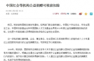 中国红会等机构公益捐赠可税前扣除2013-11-14昨日,财政部和国税总局发布通知,经两部门联合审核确认,中国红十字会总会、中华全国总工会、中国宋庆龄基金会和中国国际人才交流基金会具有2013年度公益性捐赠税前扣除的资格,这也是今年首批确认获得税前扣除资格的公益性社会团体。 这一资格的确认意味着,企业、事业单位、社会团体以及其他取得收入的组织或个人今年通过上述四家机构进行的公益性捐赠支出,可按规定予以税前扣除。 2009年,财政部、国家税务总局联合发布《关于通过公益性群众团体的公益性捐赠税前扣除有关问题的通知》,明确企业通过公益性群众团体用于公益事业的捐赠支出,在年度利润总额12%以内的部分,准予在计算应纳税所得额时扣除;个人通过公益性群众团体向公益事业的捐赠支出,也准予在所得税税前扣除。 根据要求,所有接收捐赠的公益性群众团体,需按程序申请确认公益性捐赠税前扣除资格,其中,由中央机构编制部门直接管理其机构编制的群众团体,向财政部、国家税务总局提出申请;由县级以上地方各级机构编制部门直接管理其机构编制的群众团体,向省、自治区、直辖市和计划单列市财政、税务部门提出申请。按照惯例,每年年底或次年年初,财政部和国税总局将分批公布获得税前扣除资格的公益性社会团体名单。 来源:北京商报 原文地址:http://gongyi.ifeng.com/news/detail_2013_11/13/31204702_0.shtml -