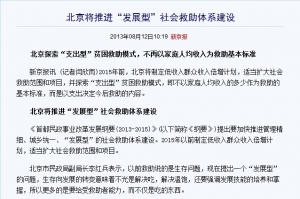 北京将推进“发展型”社会救助体系建设2013-08-12北京探索“支出型”贫困救助模式,不再以家庭人均收入为救助基本标准 新京报讯 (记者闫欣雨)2015年前,北京将制定低收入群众收入倍增计划,适当扩大社会救助范围和项目,并探索“支出型”贫困救助模式,即不以家庭人均收入的多少作为救助的基本标准,而是以支出决定今后救助的内容。 北京将推进“发展型”社会救助体系建设 《首都民政事业改革发展纲要(2013-2015)》(以下简称《纲要》)提出要加快推进管理精细、城乡统一、“发展型”的社会救助体系建设。2015年以前制定低收入群众收入倍增计划,适当扩大社会救助范围和项目。 北京市民政局副局长李红兵表示,以前救助说的是生存问题,现在提出一个“发展型”的问题,生存向发展的转变意味着不光是解决吃,解决温饱,还要强调发展技能的培养和掌握,所以更多的是要给受救助者能力,而不仅是吃的东西。 李红兵说,发展型的救助更多是给低收入群众生活的能力,这和收入倍增计划连在一起。对于这部分群众如何倍增,是简单拿钱的倍增,还是发展型的倍增,是首要关注的问题。 按需设定医疗教育等救助准入条件 《纲要》提到要探索“支出型”贫困救助模式,按需求设定不同的医疗、教育、住房等专项救助准入条件,建立就业、保险、救助、慈善的联动机制,建立“津贴+服务”综合救助模式。 据介绍,所谓“支出型”是对应“收入型”而言。以前的救助或者是低保,是以家庭人均收入的多少作为基本标准。实际上,这往往存在问题。在同等收入的困难家庭中,如果一家人中有人患有疾病甚至重大疾病,这就是困中之困。有的困难家庭,家庭成员身体都很好,甚至可以在外面挣钱,而这部分收入又属于灰色收入,没有纳入到可控范围里,那么低保就不是解决他的生存问题,而成为他额外获得的一笔钱。 李红兵说,“支出型”是改变“收入型”救助的重要一点,以支出来决定今后救助的内容,“支出型”救助不再是蜻蜓点水,只解决表面的方式。以后的救助将是综合的,可能集合来自民政低保、医疗救助等各方面的救助,集中实施救助。所以建立就业、保险、救助、慈善的联动机制指的就是把钱和服务连在一起。 ■ 链接 下半年制定困难群体收入倍增方案 市发改委有关负责人此前表示,北京上半年经济运行平稳,但现在扣除物价因素后,北京城乡居民收入距离年初设定的增加7.5%目标还有一定差异。因此,下半年还需要采取多种措施,增加居民收入。 市财政局表示,下半年将突出财政保障民生的投入重点,增加对群众出行、居住条件、社会保障等领域的财政投入。同时,落实居民收入倍增计划,研究完善财政政策措施,着力提高低收入群体的收入水平。 市发改委主任张建东提出,下半年要加快城乡居民增收步伐。在落实北京促进就业增收的各项政策的同时,加强企业工资分配指导调控,完善农民工工资支付保障机制,并制定困难群体收入倍增方案。 来源:新京报 原文地址:http://gongyi.sina.com.cn/gyzx/2013-08-12/101944755.html