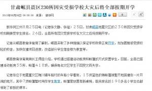 甘肃岷县震区230所因灾受损学校大灾后将全部按期开学2013-08-26新华网兰州8月25日电(记者张文静、张锰)25日,甘肃岷县地震灾区的230所因灾受损学校如期接受学生报名。26日,全县所有因灾受损学校在大灾之后将按期开学。 记者从岷县教育体育局了解到,岷县采取了多种措施以保证学校秋季正常开学,如加固维修受损较轻的校舍,加快在建项目进度,改造部分学生宿舍楼为教室等。 岷县教育体育局局长王得臣介绍,学校通过搭建活动板房和帐篷的方式安置学生。目前,全县已搭建活动板房35所、帐篷418顶,确保每名灾区学生不因受灾而失学。 记者在位于地震重灾区梅川镇车路村的车路小学看到,15顶蓝色的棉帐篷被整齐地搭建在一片开阔的地方,其中7顶帐篷暂时用作学生教室,帐篷里放置有新桌椅,前来报名的190多名小学生也都领到了崭新的课本。 车路小学校长李想林说:“地震造成以前的校舍严重受损,无法维修,震后就全部拆除了。虽然现在的帐篷小学比震前学校小了点,但教室、教学器材、学生课本和文具都够用,具备正常开学的条件。” 王得臣告诉记者,目前,各因灾受损学校的桌椅黑板和教材课本均已到位。“今天报名结束后,明天学生将正式开学上课。” 7月22日,甘肃岷县漳县发生6.6级地震,造成岷县300多所学校中的230所学校不同程度受灾,其中95所学校严重受损,包括教学器材、课桌凳等在内的近万件教学设施受到损坏,受灾学生1.5万人。 地震发生后,甘肃省拨付岷县学校抗震救灾应急资金670万元、下拨应急恢复建设工程中央专项资金900万元,用于因灾受损学校建设。截至目前,岷县还接收到数千余件来自社会各界爱心人士和公益组织捐赠的课桌凳、书包、台灯、打击乐器等学习用品。 来源: 新华网 原文地址:http://news.xinhuanet.com/gongyi/2013-08/26/c_125244135.htm -