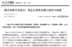雅安地震月度盘点:基金会募款金额已超汶川地震2013-05-211.基金会中心网建立基金会善款募集、使用统一信息披露平台,方便政府、媒体、公众零成本监督,未来三年将持续跟踪雅安地震善款流向 截止2013年5月19日8点02分,根据基金会行业第三方信息披露平台——基金会中心网基于互联网数据信息的整理统计,全国共有144家基金会已参与地震救援和灾后重建工作,共募集善款和物资已达13.79亿元人民币。其中深圳壹基金公益基金会募集2.85亿元、中国扶贫基金会募集2.48亿元、中国初级卫生保健基金会募集1亿元、上海市慈善基金会募集7587万元、中国青少年发展基金会募集7056万元。参与雅安地震救援和灾后重建工作的144家基金会共累计支出款物合计3.05亿元人民币。基金会中心网已建立在线专题,详细披露善款募捐和善款流向的数据和信息,并将在未来三年跟踪善款流向并定期发布报告,保证实时在线向公众公开,方便政府监管部门、广大媒体和公众随时查询监督。网址:http://www.FoundationCenter.org.cn/newindex.html 2. 参与雅安地震救援和灾后重建工作的144家基金会中,已有62%基金会披露支出善款用途,51%基金会披露善款灾后重建使用方向,和汶川地震灾后成鲜明对比 地震发生后12小时内,基金会中心网同全国参与救灾的基金会建立联系,发布信息披露标准,并同基金会保持热线沟通。截止2013年5月19日8点02分,深圳壹基金公益基金会和中国扶贫基金会等89家基金会已披露了善款用途,主要用于灾民生活必需品的提供以及教育、卫生医疗和基础建设等方面。灾害救援工作已进入过渡安置和灾后重建阶段,根据本次地震灾区恢复及灾区群众的需求,基金会募集的善款将投入到灾后重建阶段的各类软、硬件建设中。144家基金会中有74家已明确了未来善款的主要使用方向,而如何有效地使用善款也将成为下一阶段各基金会面临的巨大挑战,其余没有披露善款用途和资金使用计划的基金会也将成为未来公众关注的重点之一。 五年前,汶川地震之后,中国救灾捐赠高达760亿,其中基金会募集的资金达13.75亿,根据清华大学公共管理学院邓国胜教授团队的调查结果,在一年之后,仅有4.7%的捐赠者非常清楚捐赠资金的流向,而66.7%的公众明确表示不太清楚捐赠资金的流向。为了改变基金会善款流向不透明的现状,国内35家基金会于2010年共同发起成立了基金会中心网,建立基金会行业信息披露平台,打造透明健康的公益文化。 3.《中国基金会4.20救灾行动自律联盟公约》即将发布,行业自律迈上新台阶 为贯彻民政部《关于四川芦山7.0级强烈地震抗震救灾捐赠活动的公告》精神,响应中国慈善联合会《关于动员会员和社会各界救援雅安芦山地震灾区的紧急倡议》,基金会中心网与多家基金会于4月23日共同发起成立“中国基金会4.20救灾行动自律联盟”。该联盟由参与芦山地震救援、过渡安置和灾后重建的公募基金会和非公募基金会自愿加入。自律联盟即将发布《中国基金会4.20救灾行动自律联盟公约》,参加自律联盟的基金会承诺将全程公布接受、拨付和使用捐款的情况,接受捐款人和社会监督,接受政府监管,如实回答公众和媒体质询,承担相关的法律责任。 4.在线募捐平台和基金会中心网平台强强联手,善款募集、使用和监管两手都要抓两手都要硬 基金会中心网作为专业的第三方信息披露平台,接受微公益平台的委托,联手启动#透明微公益#行动,披露在该平台上发起项目的15家基金会,公示其36个项目的善款使用情况,确保所有善款透明公开,对10万捐款用户负责。根据信息披露专题显示,参与微公益平台筹款的基金会已投入灾区款物合计1.6亿元,主要涉及灾后教育、卫生医疗和基础建设等领域。在今天信息时代,专业的在线募款平台同专业的信息披露平台的合作,为建立更有公信力和可持续的公益模式打下了良好的基础。用统一的信息披露平台,增强政府、媒体和公众的对善款流向的监督。 5.募款额达5000万以上的基金会共有6家,其中4家中基透明指数满分 根据统计显示,144家基金会筹集赈灾善款总额共计13.79亿元,而接受善款在5000万元以上的6家基金会在中基透明指数排名均比较高,其中深圳壹基金公益基金会、中国扶贫基金会、上海市慈善基金会、中国妇女发展基金会均以129.4分的满分表现并列第一名。在3000家参与中基透明指数排名的基金会中,中国青少年发展基金会和中国初级卫生保健基金会也名列前100名。此6家基金会接受赈灾善款总额达到8.4亿元,占据了144家基金会接受善款总额的60%以上。透明度逐渐成为新时代公益慈善组织可持续发展的核心竞争力。 来源:凤凰网公益 原文地址:http://gongyi.ifeng.com/news/detail_2013_05/20/25489018_0.shtml