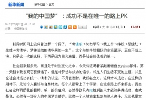 “我的中国梦”:成功不是在唯一的路上PK2013-05-23前段时间网上流传着这样一个段子,“考清华→努力学习→找工作→挣钱→娶媳妇→生娃→考清华,梦神总结的清华男的一生”。这个与放牛娃相似的命运循环,正在不断上演。只是这一次的选择,不再是因为目光狭隘,而是社会价值观的单一。 社会越来越多元,而且处于时刻变化之中,今天你还喝着茶敲着键盘发yahoo邮件,第二天醒来就发现它要停运了。但是对梦想与成功的追求,却是人们生活不变的主题,并且全社会对成功有统一、清晰的认定,不升官发财,就扬名立万,这样才叫成功。在这样的期待下,无论个人喜好与自身特点,每个人都背上了十字架,在这条路上挤来挤去。而全社会这样同质化的目标、单一的价值观,必然导致只有PK胜利的人才能够获得成功,也就是说,必然有一部分人的中国梦会破碎。就像一个人被迫拿起剑与他人决斗,无论他是文人还是骑士,无论他的追求在不在剑术的高下,他不得不挥舞胳膊,因为只有冒死一搏才有生存的希望。而在我看来,这种PK是可以避免并且应该避免的,只有价值观更为多元、开放,人们才会发现“条条大路通罗马”,并且,除了罗马,别的地方也有好风景。 美国的《独立宣言》中提到,“每个人都有追求幸福的权利”,或许应该做个补充,每个人都有追求自己认为的幸福的权利,正是在这种开放的价值观引导下,美国梦才如此令人神往。放到中国梦的语境下就是,每个人都有做梦的权利,更应该有决定做什么梦的权利,这种权利不应受到社会舆论的束缚。 小时候,我们的梦想很单纯,想当老师、警察、明星、画家、科学家,甚至清洁工;长大之后,我们不会将一份些卑微、低薪、不稳定的、没有保障的职业当梦想。每个人都被社会对成功的单一认知,捆绑到追求光鲜亮丽的道路上。当北大的毕业生开店卖猪肉,只有当了千万富翁才能够得到大众的支持和认可,才能“不觉得快乐,也不觉得不快乐”;当人们只关注银行里的存款、微博的粉丝数量,而不关心个人心灵的充实或虚空时,或许只有努力“考清华→努力学习→找工作→挣钱→娶媳妇→生娃→考清华”,才是最稳妥的生存方式。因为这毕竟是社会普遍定义、认可的成功。但是“清华”,这成功的园地,永远只能对少数人开放,于是,便有大量的梦想不得不像肥皂泡似地破灭了。 当我们不再追求单一价值观下的成功,当我们能够有追求自己的梦想的自由,当我们不再为了找个好工作非得上名牌大学,当我们不再需要为了到达更高的社会位置而放弃自己的爱好,当我们看到清洁员或其他卑微的工作不再觉得嫌弃,而是以平等的姿态看待的时候,当所有的梦想、所有的社会位置,都能平等、公开地竞争,我们的中国梦才有最广泛、最大实现的可能。(容杏) 来源:中国青年报 原文地址:http://news.xinhuanet.com/gongyi/2013-05/22/c_124746082.htm -