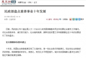 民政部盘点慈善事业十年发展2013-03-28日前,民政部公布十届全国人大一次会议以来我国保障基本民生和发展社会服务工作情况,对社会救助体系、减灾救灾能力、社会福利制度、拥军优抚安置工作和慈善事业近十年的发展进行了系统盘点。 社会救助体系基本建立 十年来,我国社会救助制度实现了从临时性、单一性社会救济向制度化、综合性社会救助的历史转型,救助管理的科学化、信息化、规范化水平明显提升,城乡各类困难群众基本生活有了稳定可靠的制度性保障。 救助制度的改革创新加快推进。最低生活保障制度实现城乡全覆盖。 各项救助制度的配套衔接切实加强。先后两批在全国143个县(市、区)开展救助申请家庭经济状况核对试点工作,探索建立了跨部门、多层次、分类别的救助申请家庭经济状况核对机制。 各项救助标准和补助水平大幅提高。从2003年到2012年,城市低保对象月平均保障标准由149元提高到330元;农村低保对象年平均保障标准由2007年底建制时的840元提高到2012年的2068元;城乡医疗救助人次数从2004年的640万人次增加到2012年的9134万人次,支出资金从4.4亿元增加到2012年的221亿元。2012年,各级财政共支出城乡低保、医疗救助资金1547.3亿元。 社会福利制度逐步向适度普惠转型 十年来,我国社会福利政策不断完善,受惠范围逐渐由孤寡老人、残疾人、孤儿、弃婴等特殊群体向全社会拓展,社会福利事业正在由补缺型向适度普惠型迈进。 老年福利事业大大拓展。截至2012年底,18个省份建立了80岁以上高龄老人生活补贴制度,22个省份建立了生活困难老人养老服务补贴制度,各个省份均出台了老年人社会优待政策。 残疾人社会福利制度不断完善。国家制定了加快推进残疾人社会保障体系和服务体系建设的指导意见,出台了生产和装配伤残人员专门用品企业免征企业所得税的政策等。 孤儿保障有了全面的制度安排。2010年国务院下发《关于加强孤儿保障工作的意见》,对孤儿抚养、教育、医疗、康复、成年后就业、住房等作了全面的福利制度安排;实施孤儿最低养育标准,机构集中养育和社会散居孤儿最低养育标准分别为每人每月1000元、600元,中央财政每年安排专项经费补助地方发放孤儿基本生活费。 面向公众的基本社会服务不断拓展。2012年民政部、财政部联合出台了《关于政府购买社会工作服务的指导意见》。2011年和2012年,中组部、民政部等多部委联合出台了《关于加强社会工作专业人才队伍建设的意见》和《社会工作专业人才队伍建设中长期规划(2011-2020年)》,专业社会工作服务有了制度性安排。 福利彩票事业实现跨越发展。2009年国务院颁布《彩票管理条例》,有效规范了福利彩票发行管理工作。福利彩票销售额连年增长,十年间累计筹集公益金2254.3亿元,有力支持了社会福利事业和其他公益事业发展。 慈善事业加快发展 十年来,各级政府从制定发展规划、完善法规政策、加强奖励扶持、建立信息公开机制、强化能力建设等方面入手,促进慈善事业发展,取得了明显成效。 政策引导进一步强化。民政部先后颁布了两个为期五年的慈善事业发展指导纲要,出台了《公益慈善捐助信息公开指引》和《关于规范基金会行为的若干规定(试行)》;连年开展中华慈善奖表彰活动。一些省份出台了相关的地方性法规,从政策扶持、慈善组织孵化、慈善行业能力建设特别是政府购买服务等方面给予慈善事业相应的支持。 慈善组织快速发展、捐赠规模不断扩大。基金会数量从2003年的954个增加到2012年底的2961个,基金会总资产已超过800亿元;。社会捐赠总额2002年为20.8亿元,2008年和2010年均突破1000亿元,2011年为845亿元,对困难群体的帮扶力度不断加大。慈善活动由扶老、助残、救孤、济困、救灾发展到教育、科技、文化、卫生、环保、体育、扶贫等各个领域,发挥了不可或缺的作用。 志愿服务广泛开展。志愿服务组织大量涌现,志愿者队伍不断壮大。广大志愿者在汶川特大地震、玉树强烈地震、舟曲特大山洪泥石流等抗灾救灾工作和北京奥运会、上海世博会、广州亚运会等重大活动中发挥了重要作用。出台了《志愿服务记录办法》。社区志愿者默默奉献在街道楼宇和村落中,为社区建设作出了重要贡献。 来源:公益时报 原文地址:http://gongyi.ifeng.com/news/detail_2013_03/28/23617650_0.shtml