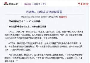 (京华时报)公益丑闻倒逼体制改革2013-01-10中国公益研究院院长 王振耀 记者:如何评价2012年中国的公益事业? 答:2012年是中国公益的体制建设之年。广东特别是深圳的立法引领了全国的社会体制改革。上海、广州、长沙等地方相关的慈善立法已经通过,这是第一个大的进展。 记者:今年最有意义的公益事件是什么?意义何在? 答:仍然是地方立法的进步,可以使地方的发展更为规范。特别是深圳的立法进步,使他们实际确立了中国社会体制改革的试验区地位,这是完全可以与经济体制改革相媲美的。 记者:对尚未出台的《慈善法》及正在修改中的《基金会管理条例》,你有什么建议? 答:慈善界所反映的五大绳索:即基金会要有主管单位;行政成本限制10%;200万元注册起点;公益支出比例要求;捐赠股票计算税收,投资收入要缴税等,应该通过立法来解决。 最关键的,我建议社会立法应该透明化,而不是由个别行政人员随意性支配着整个立法进程,对社会类的立法是相当不利的。 记者:各地的政策探索中,你认为哪里最值得称道? 答:四个地方最值得称道:一是广东,在社会管理方面与经济体制对接;二是宁夏,将社会企业发展引进到当地的发展之中;三是北京,建立首都慈善联合会,并且简化注册手续;四是上海,特别注重孵化民间组织。 记者:如何评价微博? 答:这是中国公益慈善事业发展的一个工具性革命,会对组织方式、项目管理、公开透明特别是募捐方式都会产生重大的促进,平民慈善不再是一个梦。 记者:过去十年你最关注的是什么? 答:过去十年最重要的是政府管理与慈善事业发展之间的连接渠道打通了。 记者:你如何看待负面事件导致募款下降? 答:这是很正常的行业自我调节行为。大众有质疑,才会使慈善事业能够健康发展。我们应该鼓励质疑。但同时也要注意建立解决质疑的体制,如英国就建立有慈善委员会,协调有关政府部门来及时解决社会问题。美国的法律体系比较健全。2011年美国真正发生了类似郭美美的事件,还骗取了奥巴马总统诺贝尔和平奖的10万美元,但他们马上就通过法律来解决。在我国,则主要是群众舆论监督,很不规范。 南都公益基金会理事长 徐永光 记者:如何评价2012年中国的公益事业? 答:2012年是中国公益事业发展相对平稳的一年。2011年,围绕官办慈善公信力的系列事件,对现行慈善体制有所触动,但除了红十字会系统酝酿改革,还没有看到慈善体制改革的整体动静,亟待顶层设计。 记者:今年最有意义的公益事件是什么?意义何在? 答:9月,基金会中心网透明指数上线运行是推动基金会行业透明机制建立的重要创新,受到业内、媒体和政府的积极关注,一些地方民政部门主动邀请基金会中心网去给当地基金会上课,指导提升透明度。此项创新也得到国际公益圈的高度评价。 记者:对尚未出台的《慈善法》及正在修改中的《基金会管理条例》,你有什么建议? 答:对《慈善法》并不感兴趣,目前政府对慈善的性质还需要进一步理解清楚。基金会条例的修改修法者也不够专业。我比较关注的是政府主管部门对税法实施规定的错误的改正。 记者:各地的政策探索中,你认为哪里最值得称道? 答:温州的社会组织登记新规,有多项突破。 记者:如何评价微博? 答:参与公益人人可为,意义非凡。但需要基层公益组织——地方基金会、草根NGO的发展,否则,自发性参与公益活动的规范化和可持续都有问题。 记者:过去十年你最关注的是什么? 答:一则主流公益慈善体制的国进民退(从政府理念和资源流向看表现明显),一则民间自发的公益参与热情涌动,权利意识提升;因为体制原因,社会慈善文化缺乏正确导向,因此被陈光标这样的慈善“玩家”忽悠。 记者:你如何看待负面事件导致募款下降? 答:都是慈善体制惹的祸。慈善机构需要经历痛苦煎熬乃至破产,置之于死地而后生。 清华大学公共管理学院创新 与社会责任研究中心主任 邓国胜 记者:如何评价2012年中国的公益事业? 答:2012年,中国的公益慈善界相对比较平淡,发展也比较平稳。总体感觉,2012年比2011年的情况基本持平或略有增长。 记者:今年最有意义的公益事件是什么?意义何在? 答:2012年,可圈可点的事情实在太少。如果一定要说的话,在政策环境方面,虽无大的突破,但民政部门还是出台了若干部门规章,如《关于规范基金会行为的若干规定(试行)》《关于规范社会团体开展合作活动若干问题的规定》等。另外,2012年中央财政专门安排了资金购买社会组织服务,也可视为中央对扶持公益慈善事业的态度。还有就是民政部联合多个部委和深圳市政府在深圳举办的慈展会。 记者:对尚未出台的《慈善法》及正在修改中的《基金会管理条例》,你有什么建议? 答:对于《慈善法》,希望能够为公益慈善事业的发展创造更宽松的环境,更好保护捐赠人和公益慈善组织的权益,让更多的公益慈善组织能够更便捷募款;对于《基金会管理条例》,也同样希望能够降低基金会登记注册的门槛,给基金会更大的发展空间,但需加强对公益慈善组织和基金会的监督管理,特别是发挥社会监督的作用。 记者:各地的政策探索中,哪里最值得称道? 答:广东的改革最值得称道。一是在公益慈善组织登记注册方面,降低了门槛;二是加大政府培育和扶持的力度;三是加快了部分公益慈善组织、行业协会去行政化的步伐。 记者:如何评价微博? 答:微