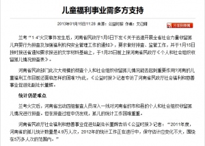 民政部:将修改法律鼓励收养2013-01-11民政部回应兰考“1·4”火灾事件: 承认公民收养条件过高,将修改相关法律 1月4日,河南兰考一场火灾夺去了7名孤残儿童的生命,同时,也把“爱心妈妈”袁厉害式的收养困局推到了公众面前。孤儿救助体系有哪些漏洞被大火“烧”出?谁来监管地位尴尬的民间收养?尽管兰考县已启动问责机制,但争议仍未结束。 9日下午,民政部正式回应兰考事件表示,兰考火灾暴露了孤儿救助体系存在漏洞。未来,将在县级建设更多儿童福利院,同时积极推动修订完善相关法律制度,进一步鼓励公民收养,并把民间收养纳入监管。 “除了财政津贴,放宽条件、简化手续是对民间爱心最好的鼓励。”中央民族大学法学院教授、收养法专家雷明光分析称,“有关部门应负起定期巡查之责,让福利院、社区力量都参与进来。” 全国有61.5万名孤儿,民政部门仅收养10.9万名 据报道,袁厉害20年共收养百余名弃婴,但在这位摆摊妇女所在的兰考县,25年来没有一家专门的儿童福利院。民政部相关负责人也证实,目前多数县(市、区)没有专门的儿童社会福利机构。 据民政部披露,我国现有失去父母、查找不到生父母的未满18周岁的未成年人(即“孤儿”)共约61.5万名。收养主体有政府、个人、社会组织三类,其中由民政部门儿童福利机构养育的孤儿有10.9万名,由亲属养育、其他监护人抚养和一些个人、民间机构抚养的孤儿有50多万名。 该负责人表示,我国现有的省一级独立儿童福利机构9家,地一级独立儿童福利机构333家,县一级独立儿童福利机构64家,800多家社会福利机构设立了儿童部。但民政部门福利机构主要负责查找不到监护人、监护人无力抚养和未被收养的孤儿、弃婴,发挥着“兜底”保障作用。 “从资金到容量,恐怕现有的儿童福利院不能满足社会需求,这是政府工作的一个短板。”雷明光说。不少专家认为,兰考火灾直接暴露出在增加基层社区、村镇儿童福利专款投入的迫切性。 民政部今天回应表示,“十二五”期间将继续实施“儿童福利机构建设蓝天计划”,开展县级儿童福利机构建设。 收养条件过高 袁厉害收养弃婴属于未办理正式手续的“灰色收养”。但按正规程序,她连收养资格都没有。这对矛盾刺痛着公众的神经。 民政部负责人今天在总结兰考火灾教训时承认,我国儿童救助保护体系还不尽完善:有些法规需要修订,如公民收养条件过高;相关法规宣传普及不够;孤儿、弃婴的发现、报案、移送的网络体系不够健全等。民政部提出,下一步将积极推动修订完善相关法律制度,进一步鼓励公民收养。 同时,民政部门也在给袁厉害式的民办救助机构发放孤儿基本生活费,引导慈善资源和社会捐赠,帮助其解决困难,提高养育条件。 在雷明光看来:“金钱的补助是一方面,对公民收养的最好鼓励是反思我们的收养程序和条件,放宽条件、简化手续。” 我国《收养法》规定,正规的收养途径是向福利院提出申请,收养人至少应该年满30周岁、无子女、有抚养教育的能力,并且不存在传染病或精神智力障碍。“为保障儿童能有一个好的成长环境,要求这个家庭有较好的居住生活条件、良好的思想道德品质,以确保养父母能很好地履行抚养和管教养子女的职责。” 尽管该收养程序初衷良好,但却因“过于繁琐”、“一般人折腾不起”而挡住了一些爱心人士的脚步。“目前公立儿童福利院大多人满为患,而社会上很多好心人想收养弃婴却收养不到。解决这对矛盾的最好手段是‘开放’。”雷明光说,“民政部门也不妨做一下宣传,告诉公众有多少孩子等待收养,都是什么样的孩子,给爱心一个释放的渠道。” 政府或可购买救助服务 火灾悲剧后,一个不断被人提及的细节是,曾有当地民政官员试图给袁厉害收养的孤儿另寻他处,但孩子们不愿离开“妈妈”。 民政部也在回应中提到,国内外孤儿养育经验表明,福利机构养育不是最好的方式,近年来各地福利机构探索家庭寄养方式,有利于孤儿回归家庭、健康成长。 政府可否向这类长期大规模收养弃婴或孤儿的个人或民间机构,“购买”收养服务呢?民政部相关负责人表示,这类个人和机构应与民政部门合办,由民政部门履行监护责任,通过委托的方式由个人或民间机构抚养。“既符合法律规定,又能满足个人和民间机构的愿望和要求,也符合政府与民间合作、政府购买服务和社会福利社会化的发展趋势。” 但什么样的“妈妈”可以上岗,如何排查安全隐患,如果儿童遭受了虐待怎么办,“这都需要政府一面放宽准入,一面加强监管,福利院和社区力量都应该参与进来。”雷明光说。 民政部透露,近期各地民政部门正在对个人和民办机构收留孤儿情况进行全国性大排查,对不具备养育条件和安全无保障的,要抓紧将孤儿接收并集中安置到儿童福利机构;对已经具备养育条件,本人又坚持养育孤儿的,民政部门要与其签订合办协议,明确责权,纳入民政部门监管。 “民政部门‘定期上门看望’以监督对方的‘收养义务履行情况’很重要,安徽江苏已有了一些试点。”中国政法大学教授何俊萍告诉中国青年报记者,此外,由社区对收养人及其收养条件进行考察、评估等国外做法也值得借鉴。“国外还有‘试收养期’一说,即把被收养的孩子送到收养家庭中一段时间,看合不合适,确定合适了,才确立收养关系。” 北京师范大