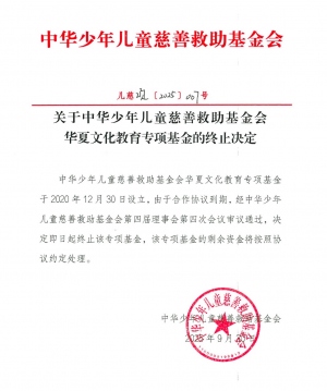关于中华少年儿童慈善救助基金会华夏文化教育专项基金的终止决定2025-09-30 -
