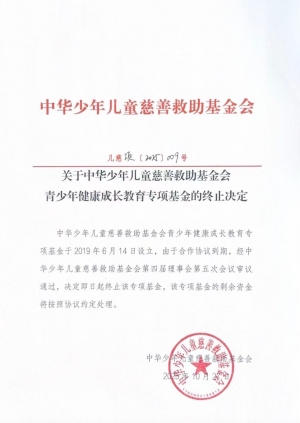 关于中华少年儿童慈善救助基金会青少年健康成长教育专项基金的终止决定2025-10-27 -