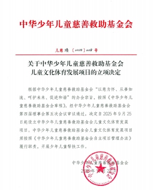关于中华少年儿童慈善救助基金会儿童文化体育发展项目的立项决定2025-11-12 -