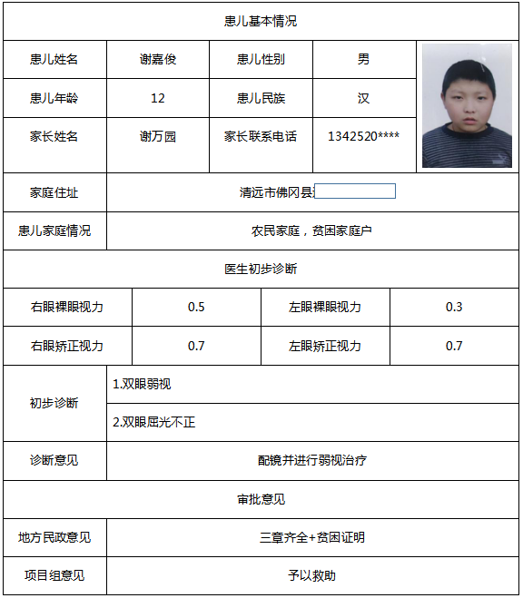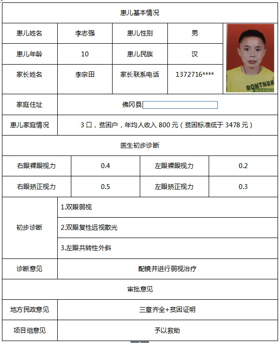 黄晓明先生出资救助20名患儿资料