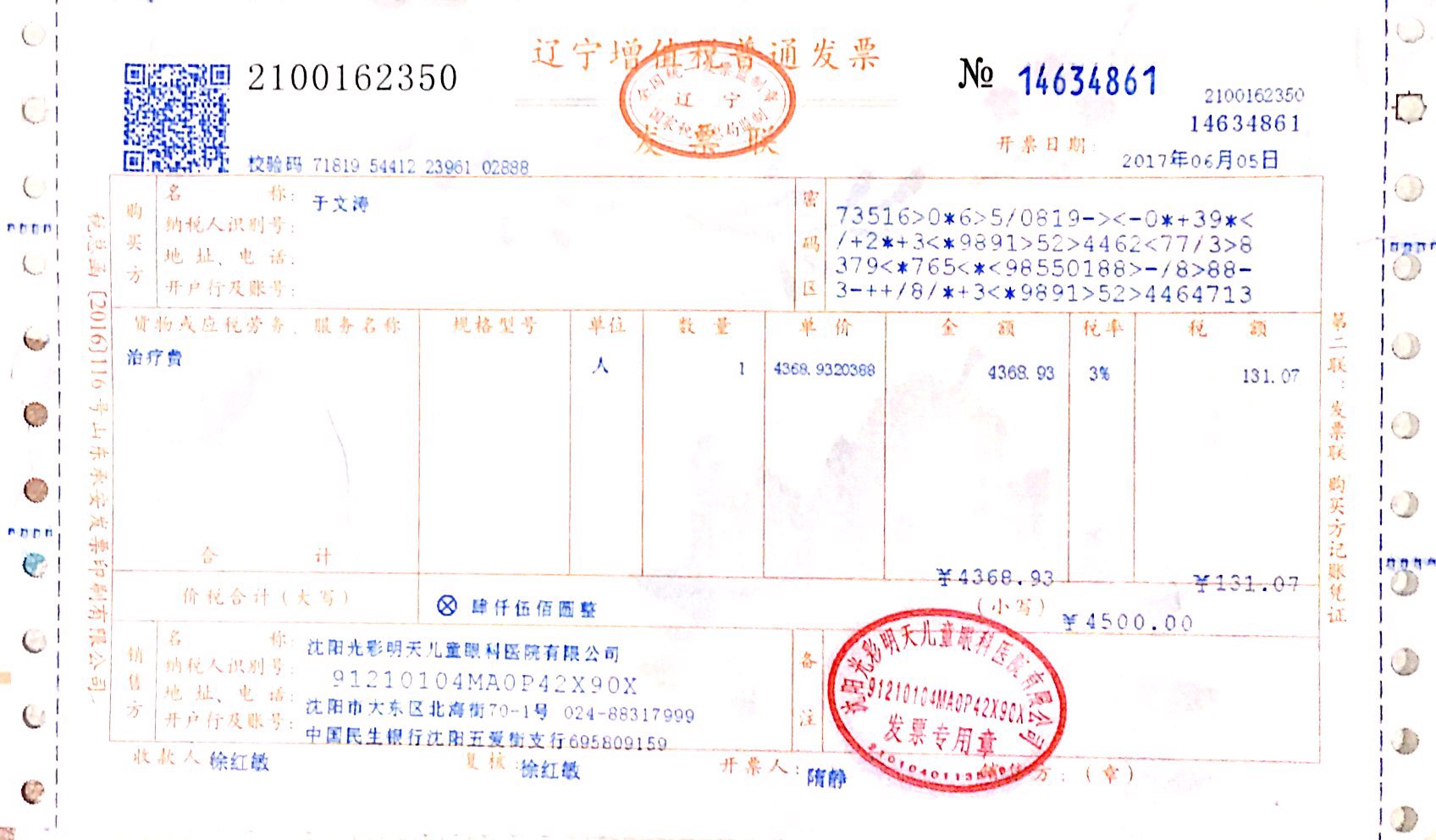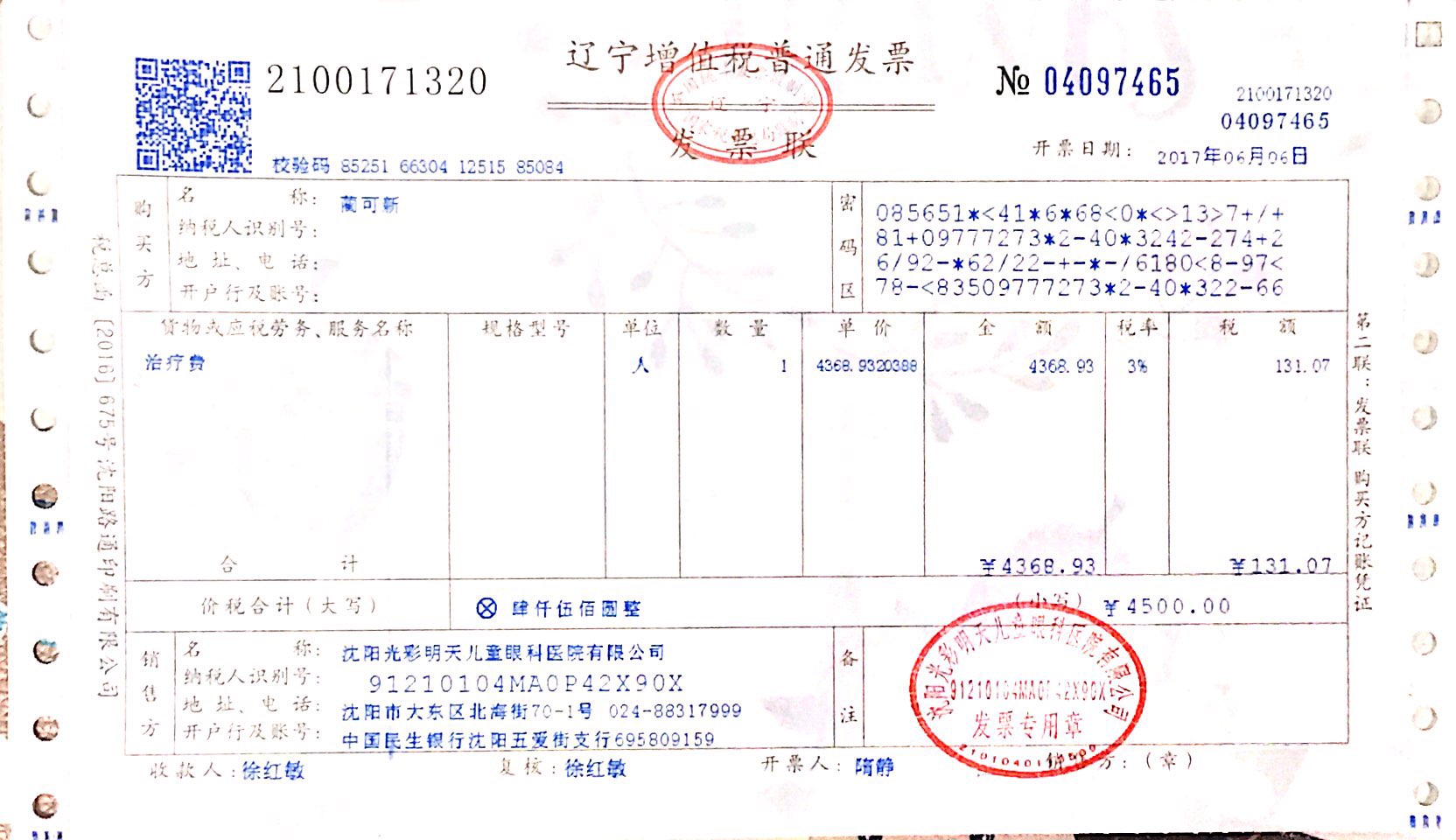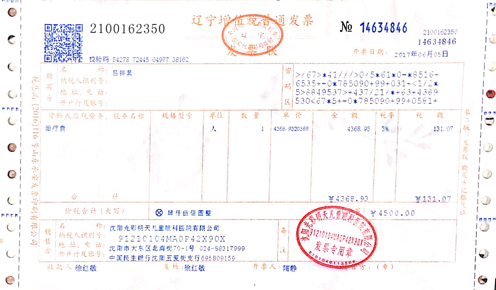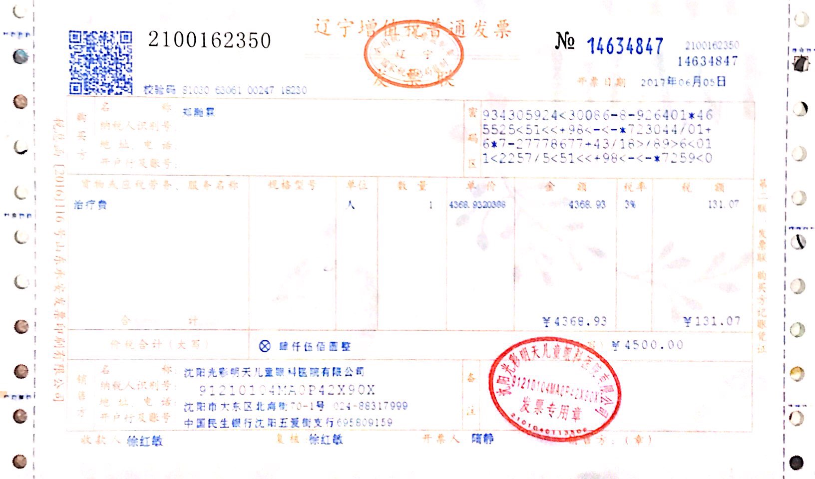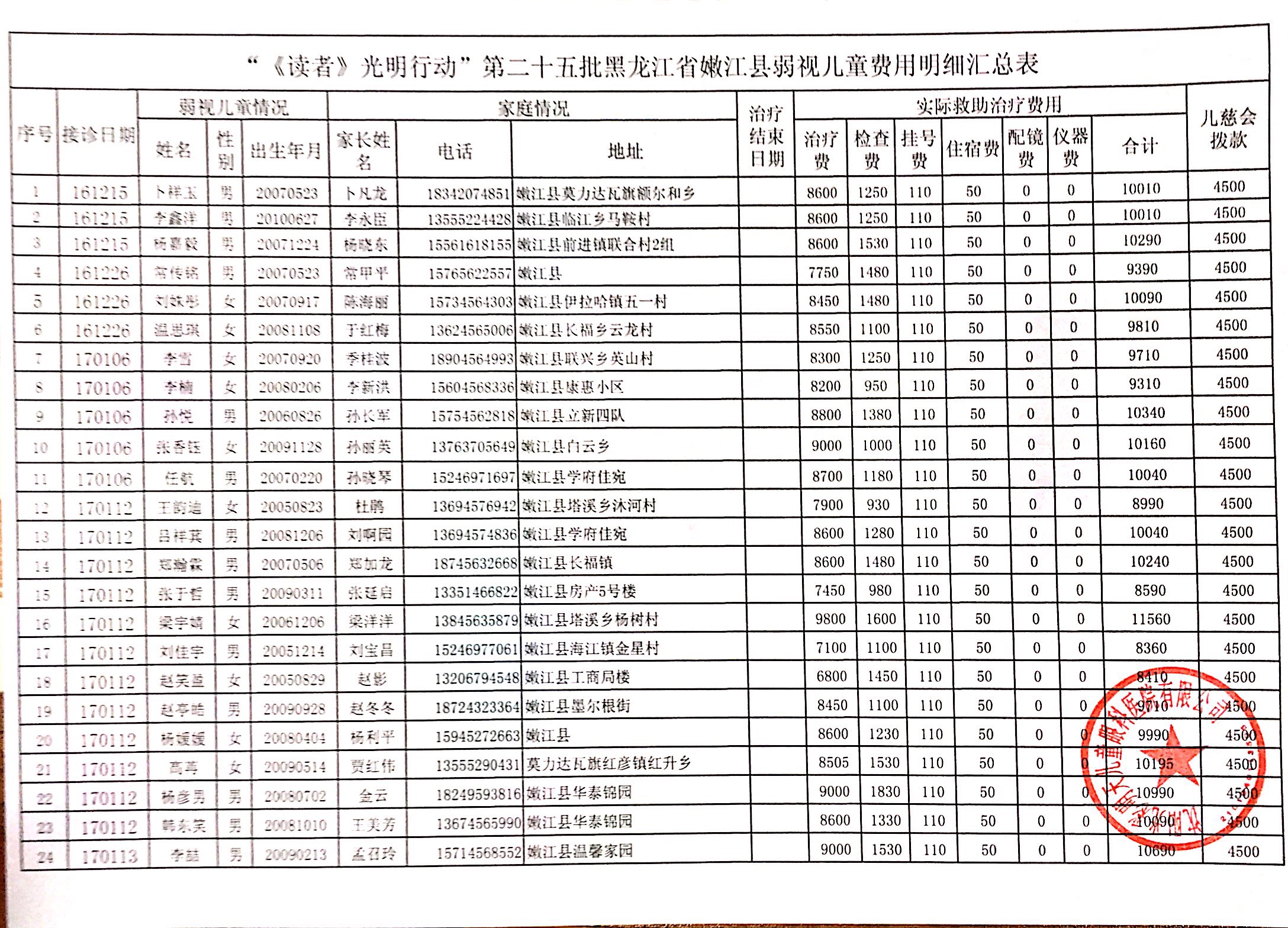 2017年6月20日,项目组为嫩江地区被救助的39名儿童拨发救助费用,共计壹拾柒万伍仟伍佰圆整,全部为患儿治疗费用。票据如下:
