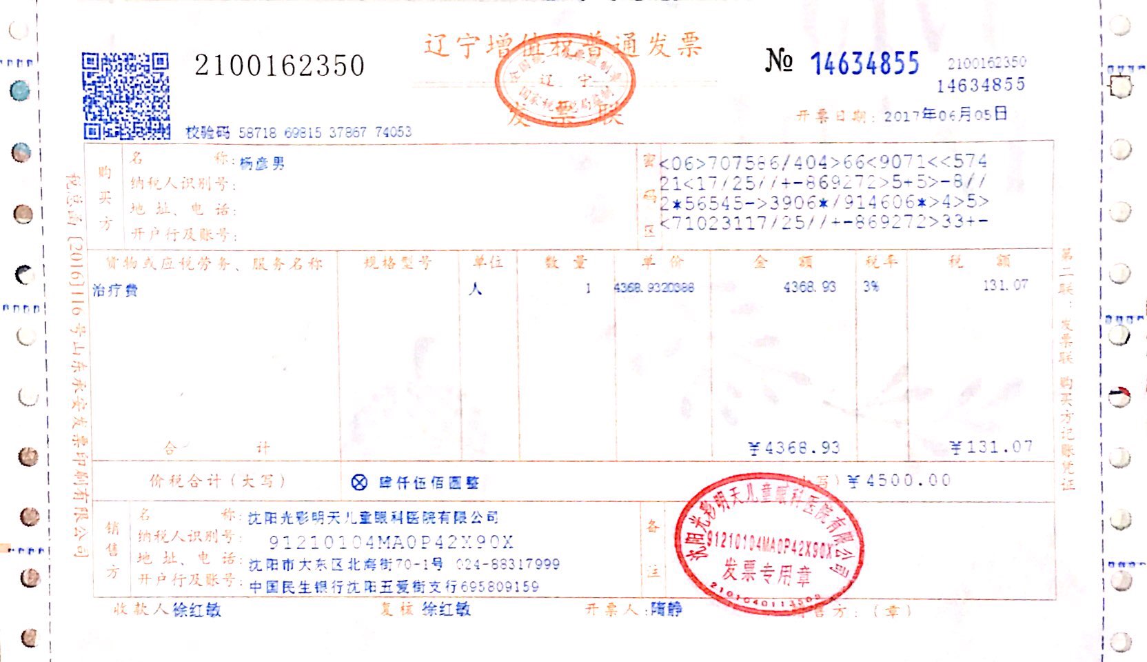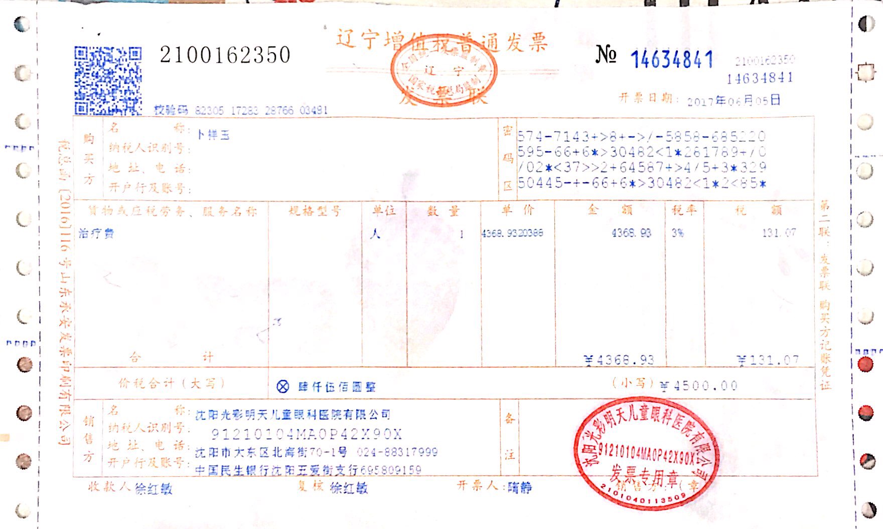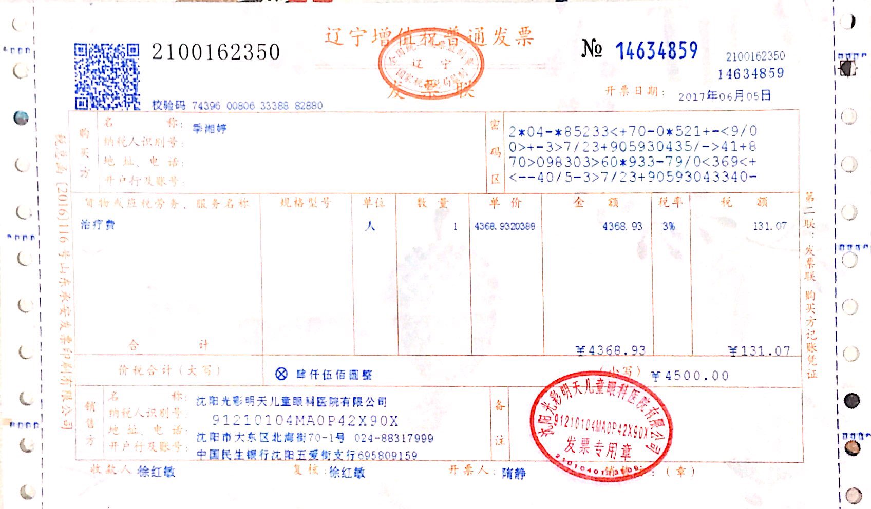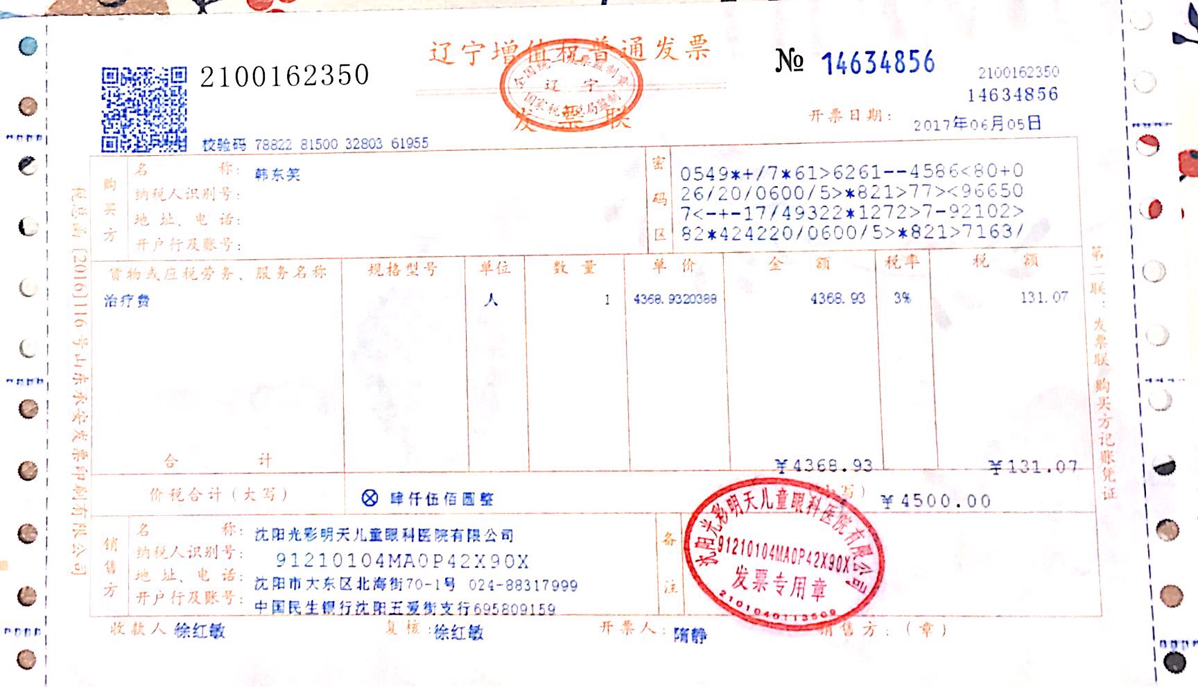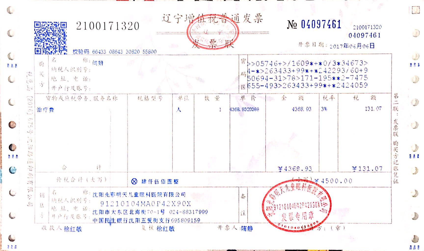 2017年6月20日,项目组为嫩江地区被救助的39名儿童拨发救助费用,共计壹拾柒万伍仟伍佰圆整,全部为患儿治疗费用。票据如下:
