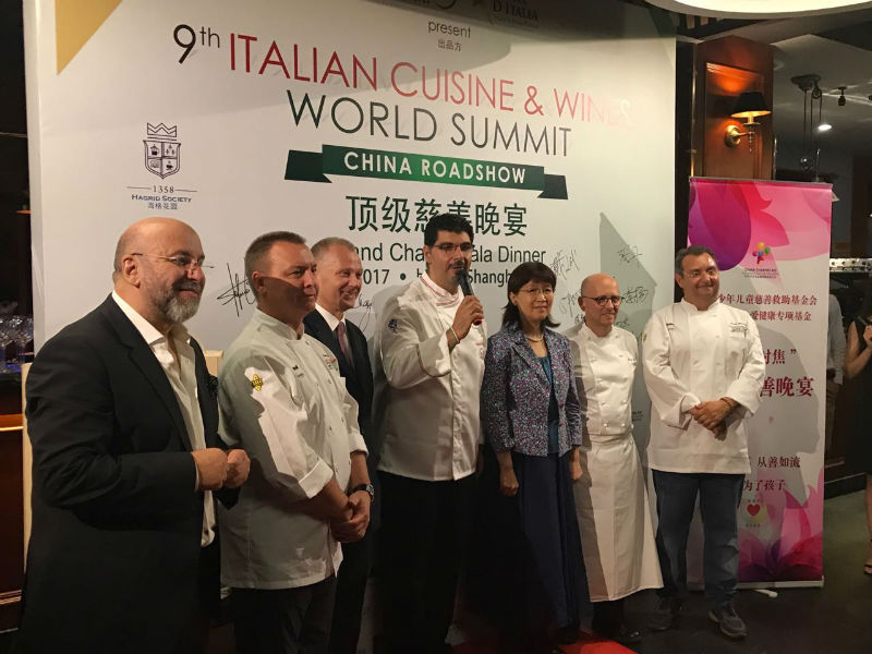千龙网7月18日讯 第九届意大利美食美酒国际峰会上海站7月17日在上?;铰泛8窕ㄔ熬傩?,意大利厨师协会中国分会与中华少年儿童慈善救助基金会(以下简称:中华儿慈会)联合奉献顶级星厨慈善晚宴。