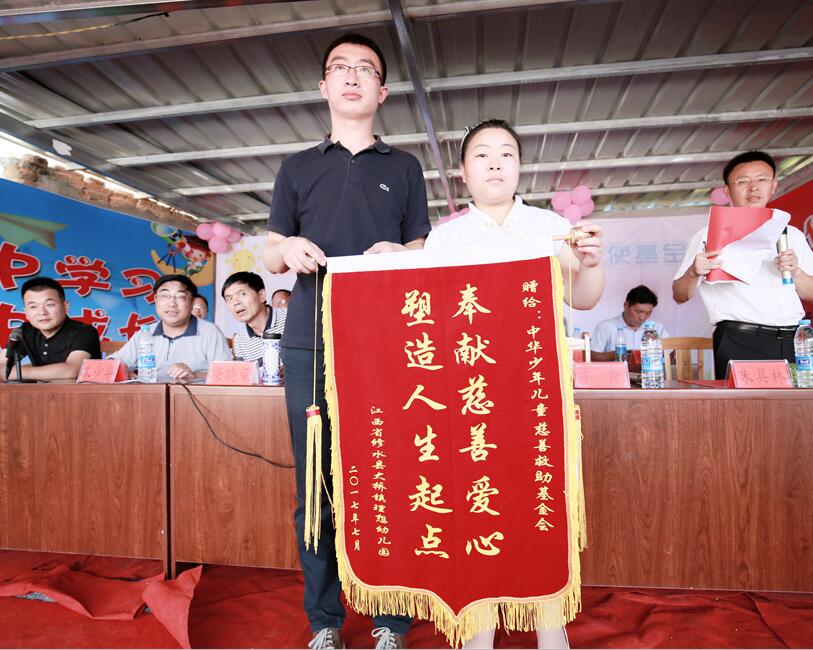7月21日,中华儿慈会起点工程爱贝天使基金少儿图书捐赠仪式在江西省九江市修水县举行,本次活动由中华儿慈会起点工程携手爱贝企业发展(上海)有限公司,为革命老区的6所农村幼儿园捐赠价值3万元的少儿图书,近500名农村幼儿受益。