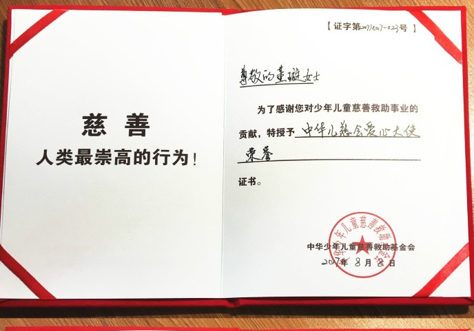 2017年8月8号,中国著名演员董璇女士特聘为中华少年儿童慈善救助中心(以下简称中华儿慈会)瞳爱救助中心“爱心大使”,并在99公益日期间为瞳爱救助中心公益代言,呼吁更多人关注视力不良儿童。