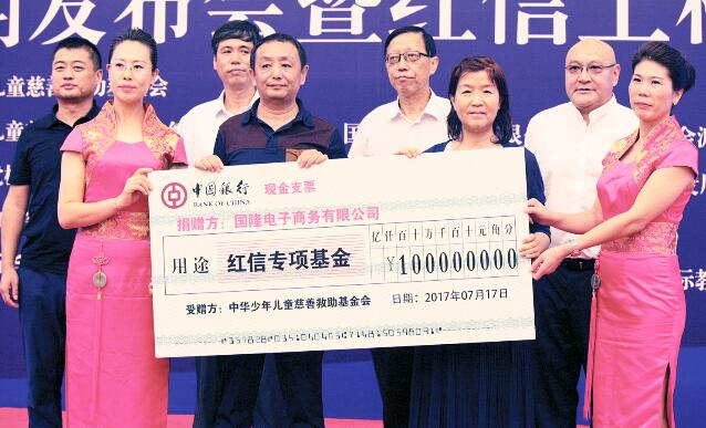 国隆电子商务有限公司向中华少年儿童慈善救助基金会捐赠100万元