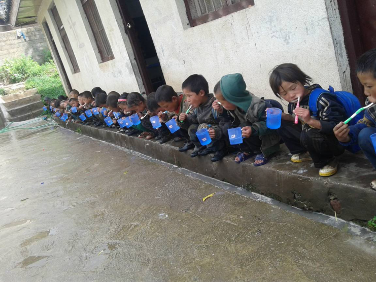 每天上课前,老师均会带领学生们先刷牙