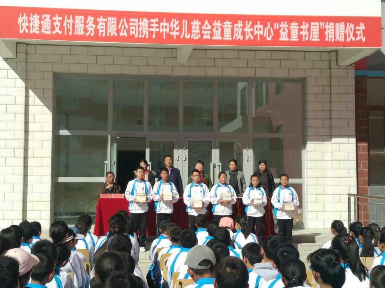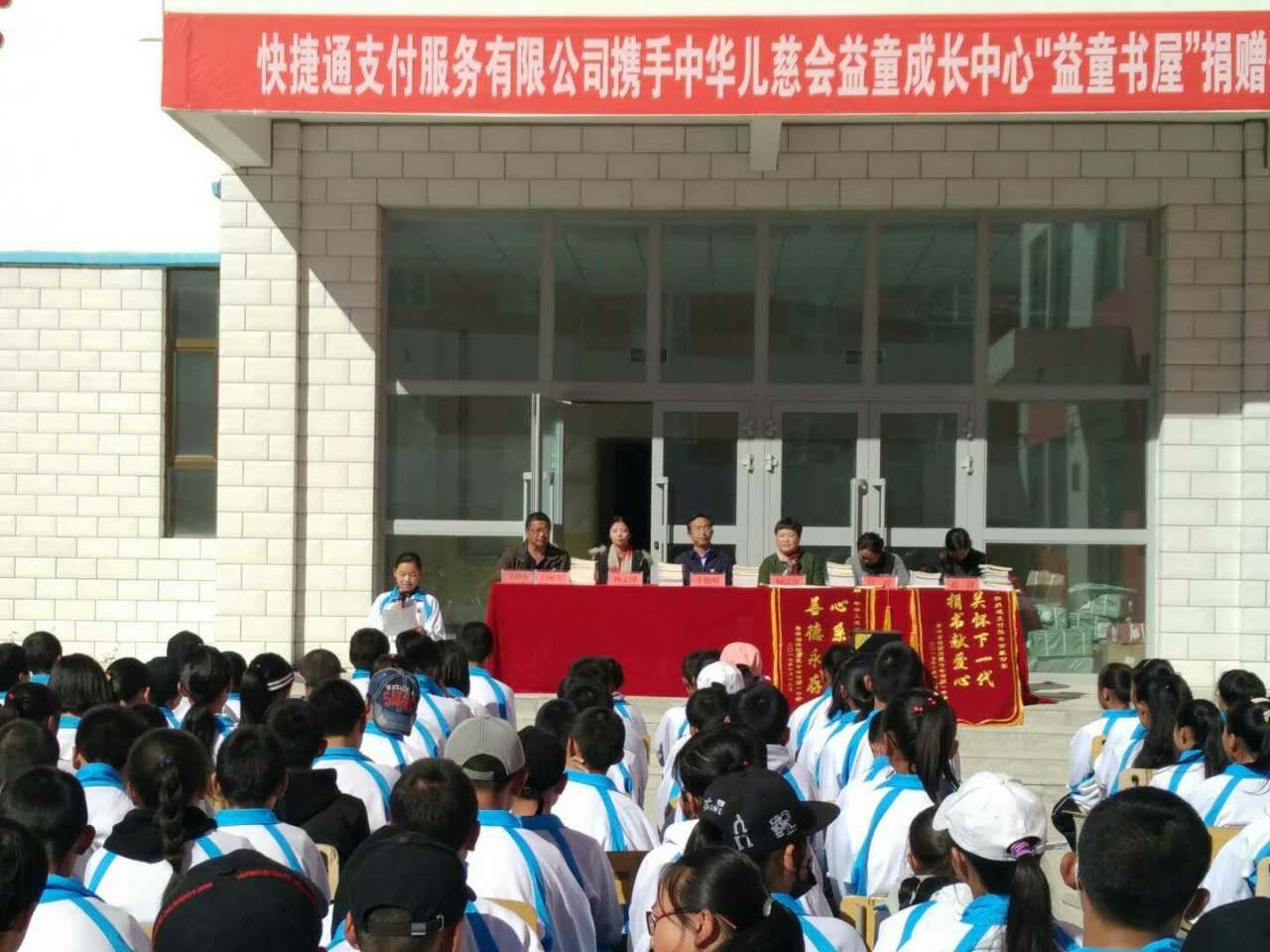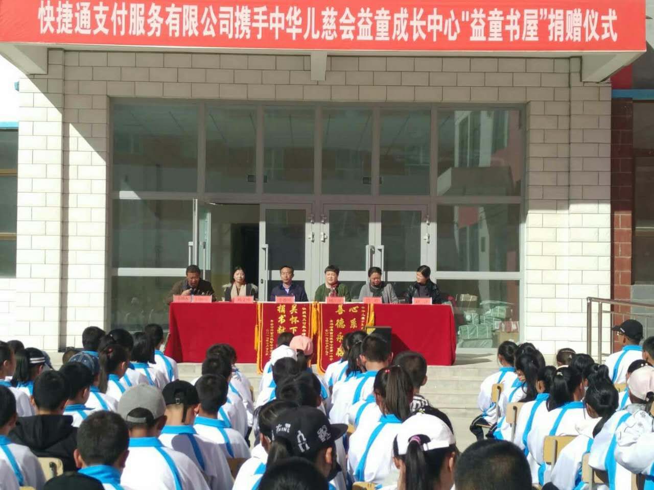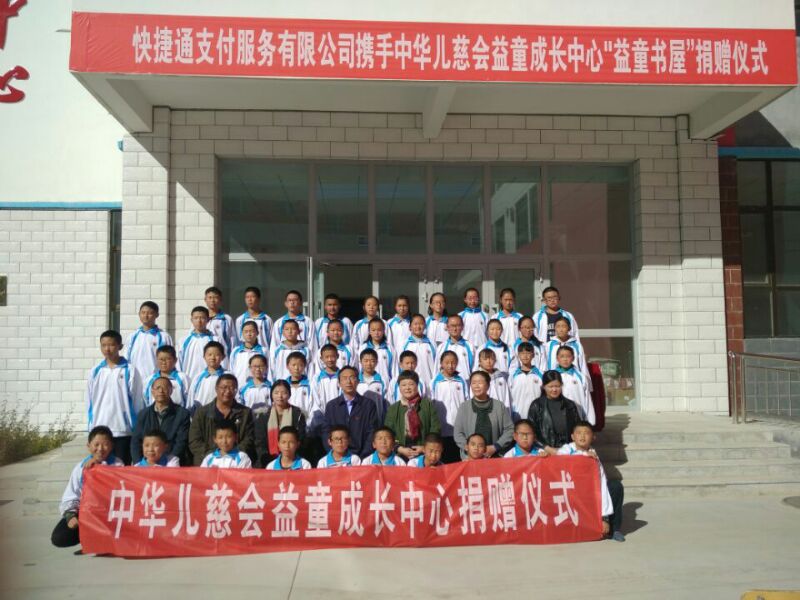 2017年10月19日下午,在这秋风送爽、充满希望的日子里,快捷通支付服务有限公司携手中华儿慈会益童成长中心在青海省海西州德令哈一中举办“益童书屋”捐赠仪式。