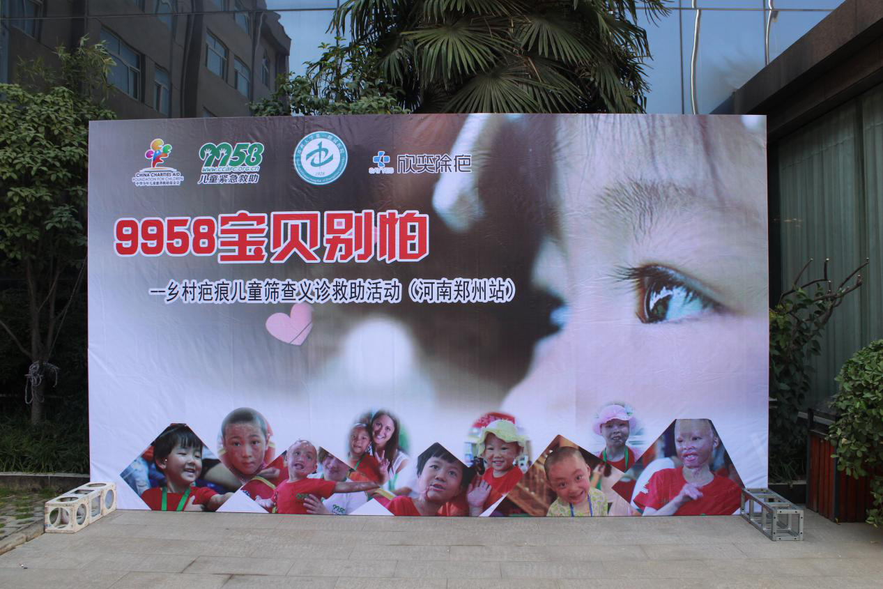 2017年10月29日,由中华儿慈会9958儿童紧急救助中心、欣奕除疤主办的“乡村疤痕儿童义诊筛查救助活动”在河南郑州举办。义诊现场共计百名来自河南及周边地区的贫困县疤痕儿童家庭前来义诊,郑州大学第一附属医院主任医师、医学博士、研究生导师——王琪影以及7位欣奕中医院疤痕专家担任义诊专家。中华儿慈会秘书长助理兼9958救助中心总监王昱、欣奕除疤董事长丁利营、著名演员爱心大使王瀚邦、欣奕除疤副总经理李一峰等到场参会。据悉这是继河南南阳、云南昭通、四川珙县义诊筛查后的第四站,之后在全国范围内欣奕除疤还会帮助组织更多贫困地区的义诊筛查活动,为疤痕儿童患者送去福音。