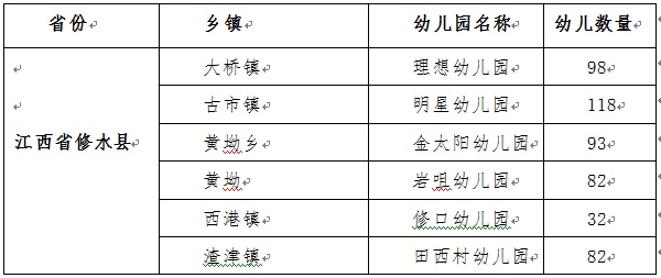 7月21日,中华儿慈会起点工程爱贝天使基金在江西省九江市修水县举行少儿图书捐赠仪式,为革命老区的6所农村幼儿园捐赠价值3万元的少儿图书,近500名农村幼儿受益。
