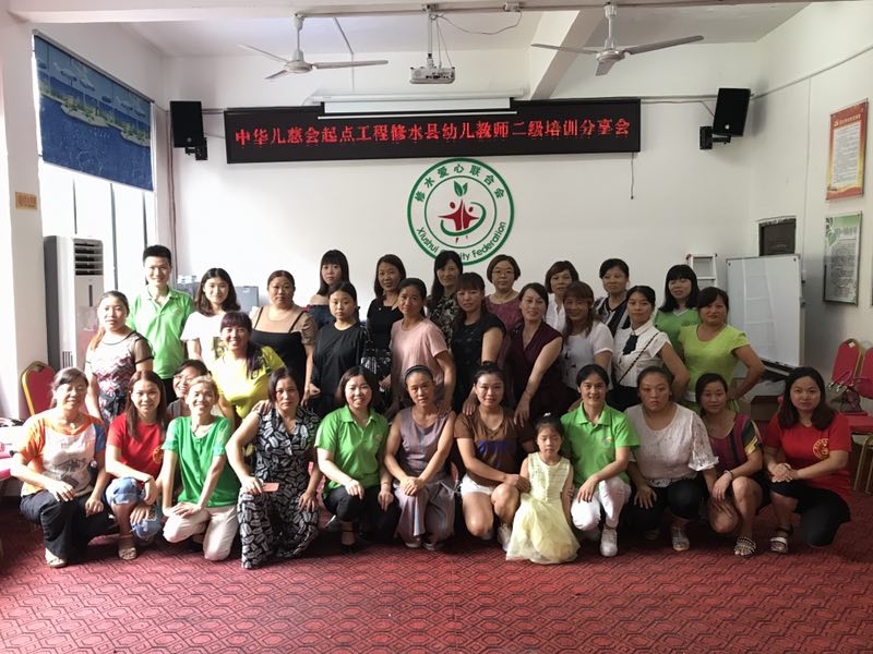 (1)8月15日,参加起点工程“农村幼儿教师成长训练营”培训归来的5名幼儿教师,在修水县关工委和爱心联合会的支持下,在修水县举办了培训分享会。爱贝天使基金资助的六家农村幼儿园的园长和骨干教师参加了分享培训课程。