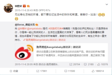 2015年,一位伊拉克女孩在微博上留言表示自己在战火中生活的希望,来源于偶像鹿晗。通过鹿饭们助力点赞,鹿晗亲自回复并为她加油。此后鹿晗愿望季诞生,以践行公益的方式为大家实现愿望,传播正能量。