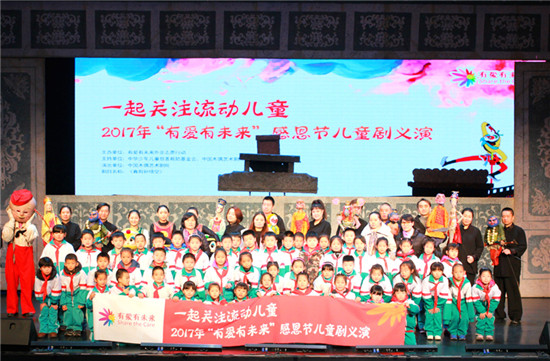 (4). 11月18日,第四届“有爱有未来”感恩节儿童剧义演活动在中国木偶艺术剧院圆满落幕,来自北京5个城区5所打工子弟学校的500名学生齐聚一堂,有爱有未来外企志愿行动联合中国木偶艺术剧院为学生们提供了《真假孙悟空》木偶剧目。