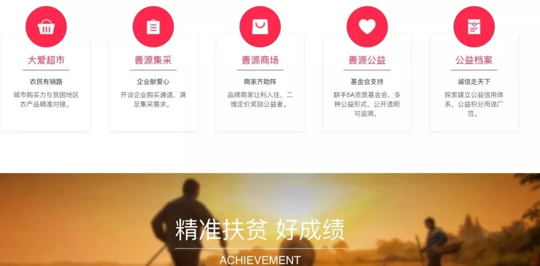 目前该平台已经已上线移动端APP,开设“大爱超市”专栏销售贫困地区农产品,此外平台还分别开设“公益众筹”、“个人求助”等等专栏。