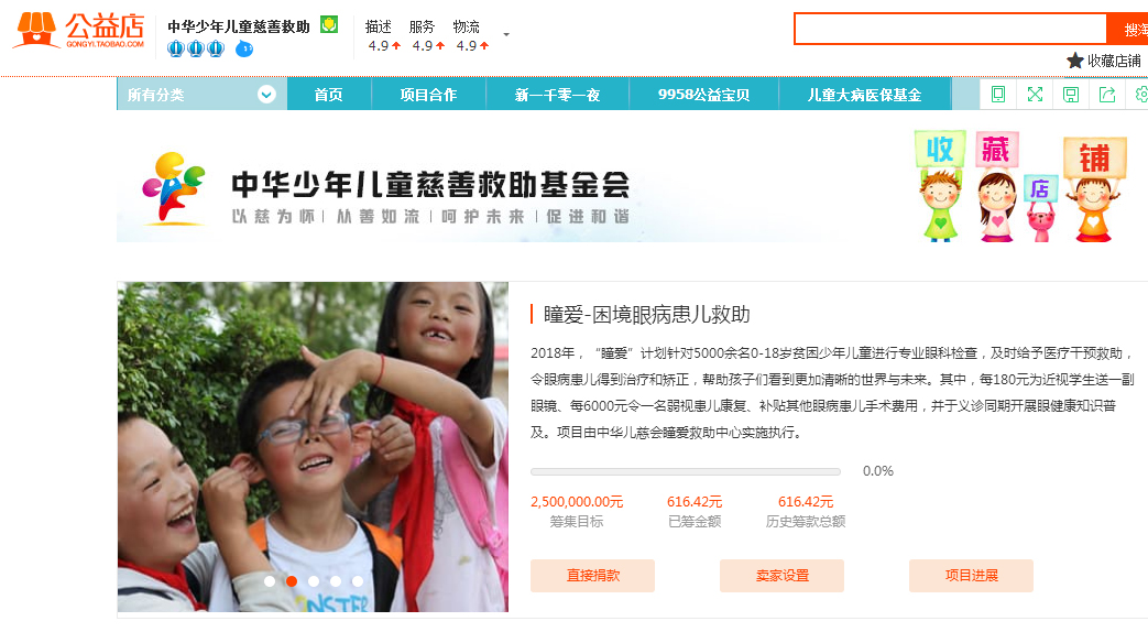 2018年3月,瞳爱救助中心正式上线成为阿里公益宝贝的公益项目,可供卖家自愿将店铺里正在出售的商品设置成“公益宝贝”,同时设定一定的捐赠比例,在商品成交后会按照设置的比例捐赠金额给该项目。