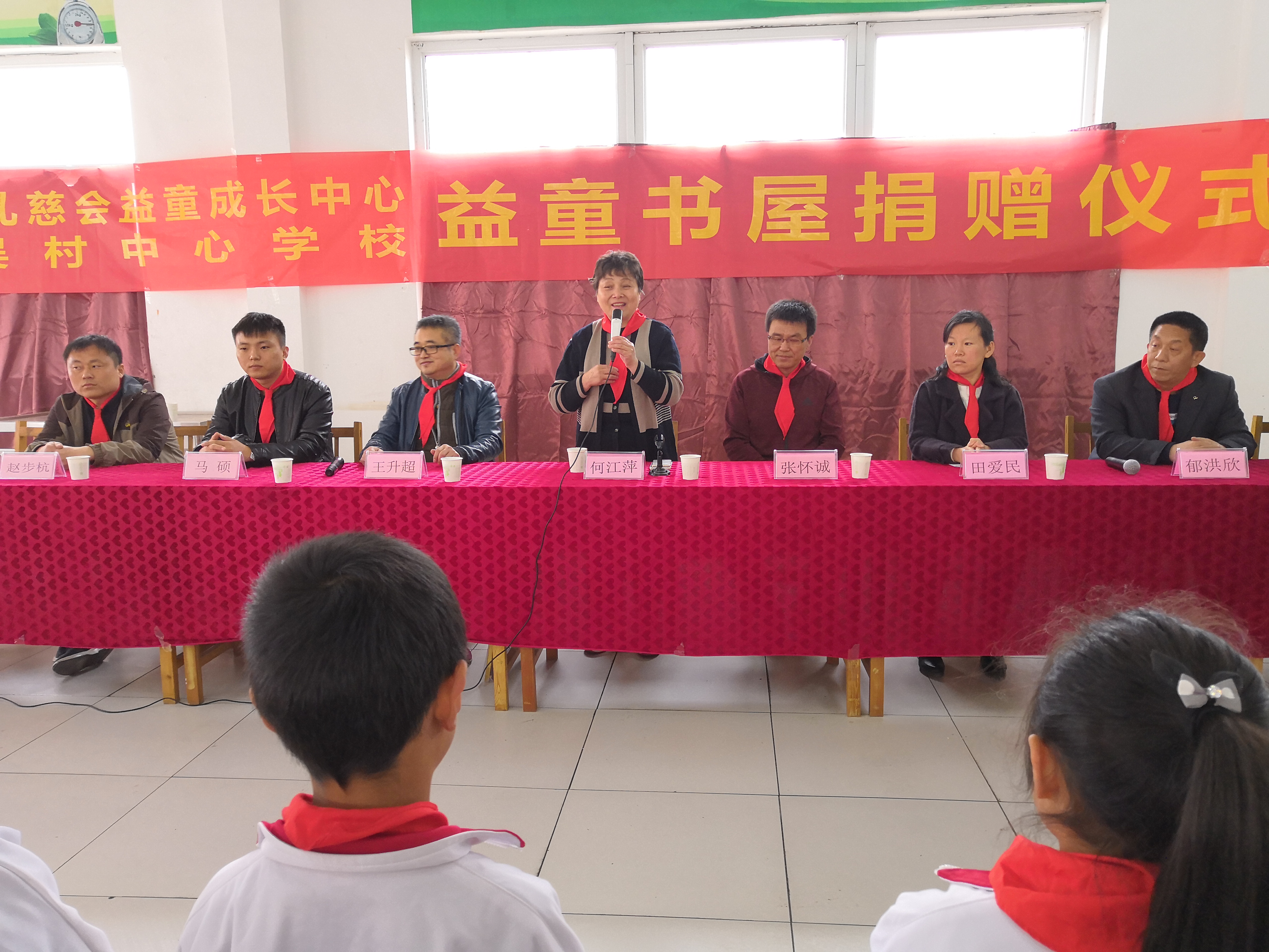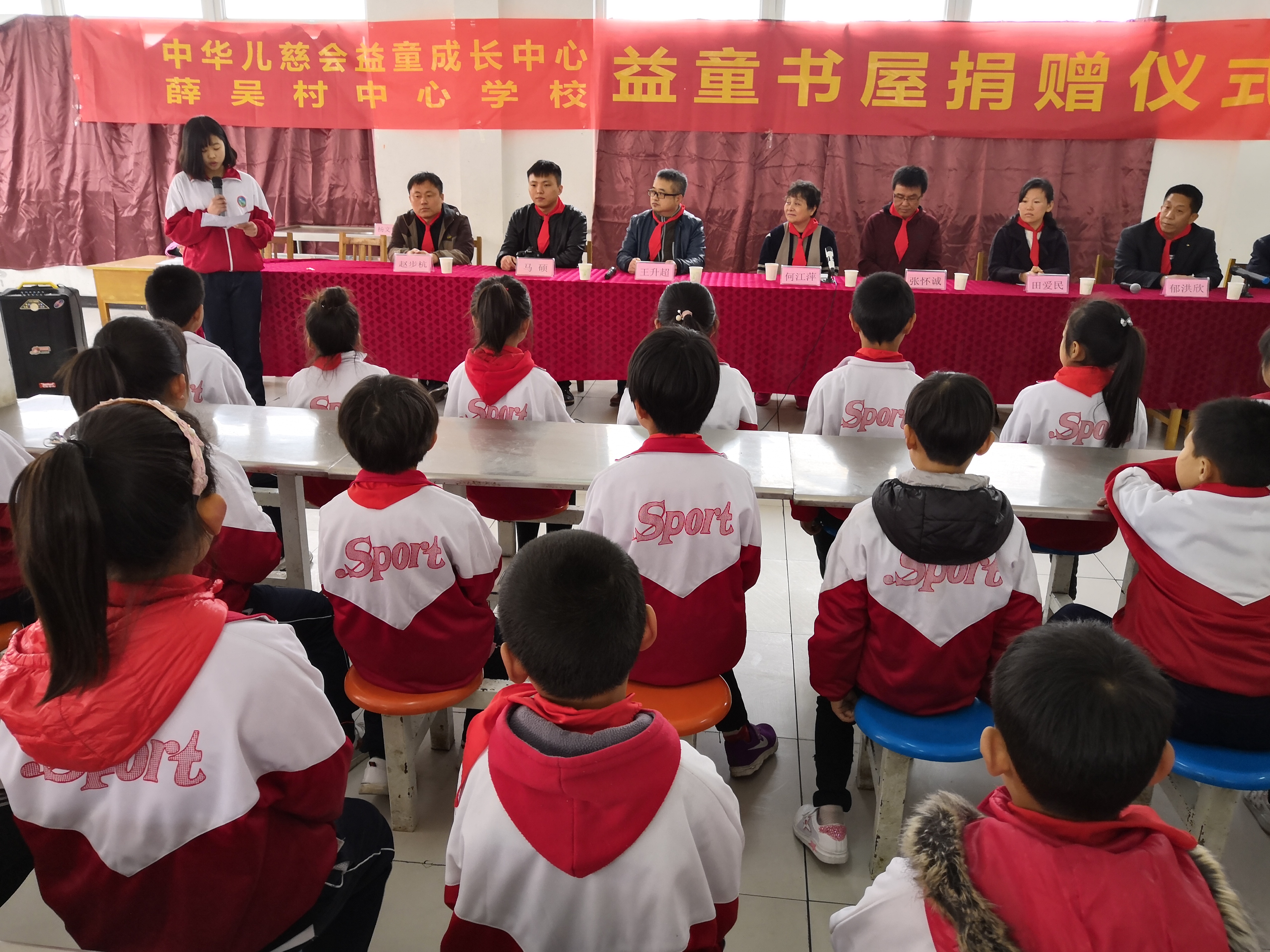 2018年4月4日,清明节的前一天,天气突然降温,中华儿慈会益童成长中心冒雨驱车一百多公里来到邢台南宫薛吴村小学,举行“益童书屋”捐赠仪式。