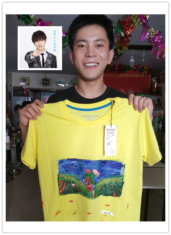 为感谢粉丝们对于中国困境儿童的关注与支持,中华儿慈会益童成长中心为林彦俊颁发捐赠荣誉证书,益童之家的孩子们亲手绘制T恤,填写感恩贺卡、献上画作以表感激之情。