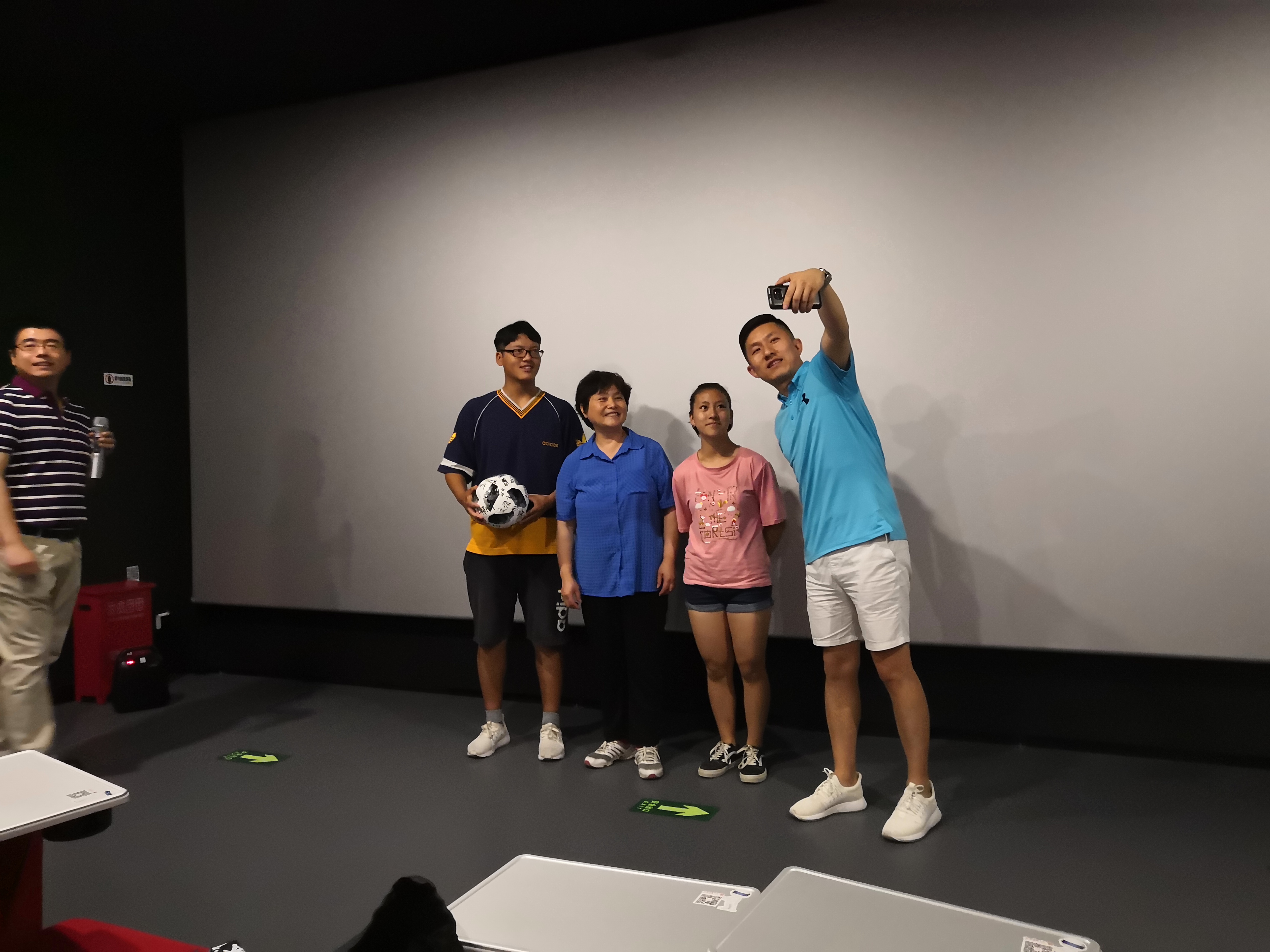 观影前举办了小型的见面会。开场环节,由德比会慈善公益派代表郭亮倡导慈善公益活动的精神:“用心用力去投入,不计大小,贡献绵薄,让我们大家都成为慈善公益的发现者、传播者和参与者。”随后,传奇奢华影城市场部张华先生上台致辞。他介绍了传奇奢华影城在慈善公益事业上的长期贡献,欢迎益童之家的孩子们在影城欢度六一儿童节,祝愿孩子们快乐健康成长。德比会俱乐部创始人王铮先生,为感谢传奇奢华影城对公益事业的贡献,特赠送一樽慈善公益之星奖杯,倡导“强强携手,助力公益”。王铮还为益童之家负责人何江萍女士及学生代表赠送了签名足球。益童之家的两位学生代表在体育方面成绩斐然,他们介绍说,台下在座的同学们也是出类拔萃,不仅学习优秀,而且在体育、舞蹈、工艺美术等方面有优异的成绩。王铮和郭亮还向周怡、孙诗洋母子赠送了签名足球,作为孙诗洋即将到来的生日礼物。最后,传奇奢华影城的丁琴女士祝大家观影愉快。